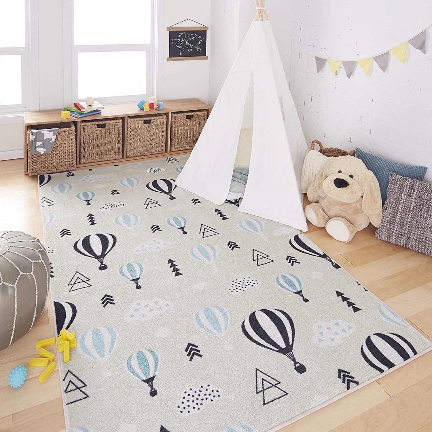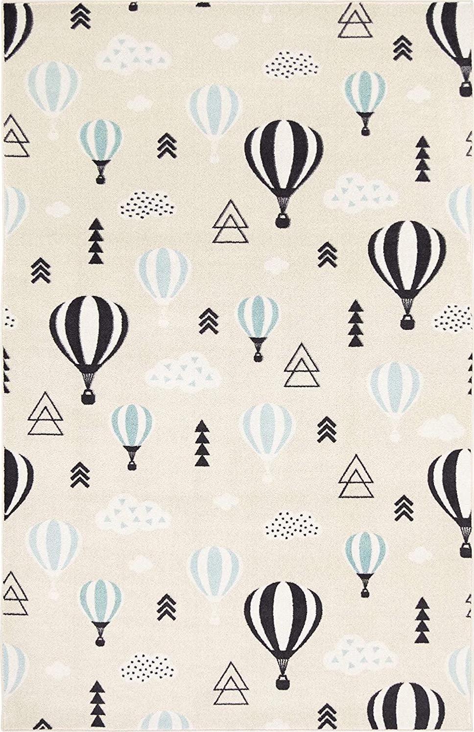 Mohawk Home Prismatic Balloon Ride Blue Contemporary Theme Kids Precision Printed Area Rug, 3’4 x5′, Cream and Red