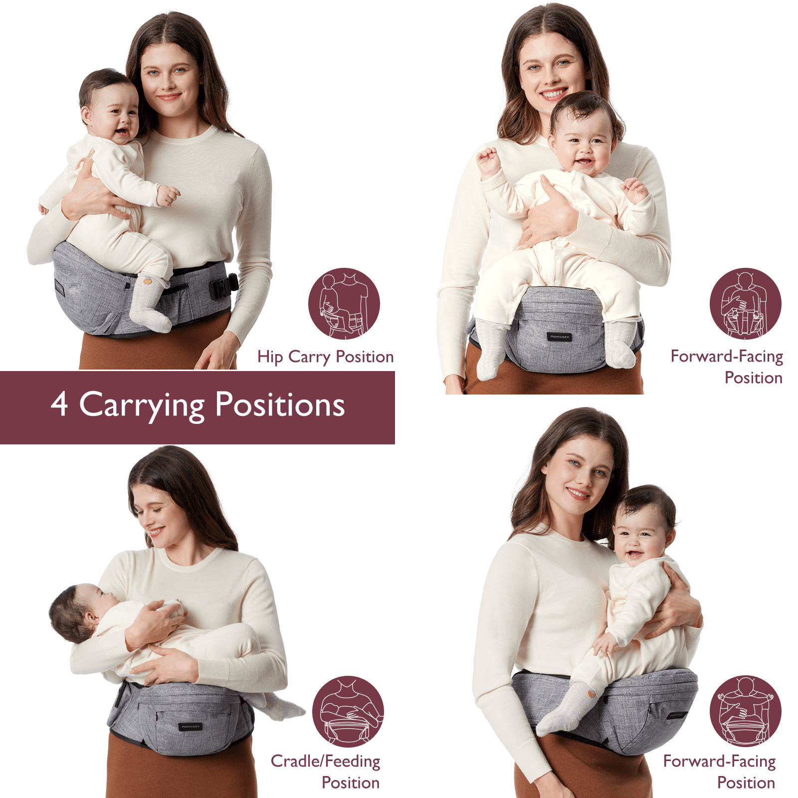 C-Section Mom-Friendly Design: The Innovative 3D abdominal support and widened waist belt feature an EVA massage pad that relieves abdominal pressure. The seat evenly distributes the baby’s weight, alleviating pressure on the parents’ back and shoulders. The widened magic tape and buckle design provide double protection for your hips. Comfortable and Ergonomic Design: The ergonomically designed seat places your baby’s hips in the pediatric-recommended “M” position, reducing strain on the adult’s spine. The 30-degree inclined seat brings your baby’s body closer to you for enhanced safety and a more intimate experience. Multiple Carrying Positions: Momocozy Hip Seat Carrier is suitable for newborns up to 36 months (or 45 pounds). It offers multiple positions: inward-facing, outward-facing, side carrying, and feeding position. This provides your baby with various options to adjust their sitting posture, allowing for more interactive moments and making outings with your baby a breeze. Multiple Storage Pockets: Momocozy Hip Seat Carrier also functions as a diaper bag, featuring multiple storage pockets. Store diapers and wipes in the concealed storage space beneath the seat, essential items like keys and phones in the side pockets, and baby bottles in the designated holder. It can also be compactly folded for easy transport of your baby’s essentials during travel. Lightweight & Versatile: Momoczoy Baby Hip Seat Carrier weighs less than 1 pound, making it a breeze to carry. It also doubles as a diaper bag with a spacious storage compartment. The Momcozy hip seat is designed to accommodate parents of various body types, with two sizes available: Regular(M) (27-45 inches waist) and Plus (L)(40-55 inches waist). Please measure your waist before placing an order.