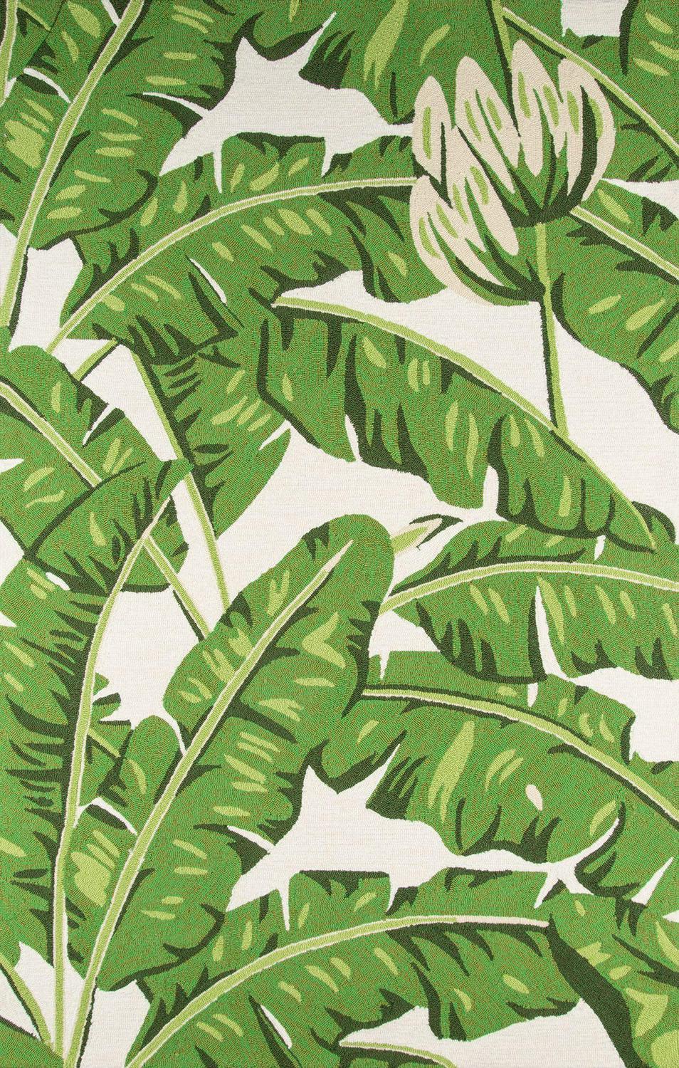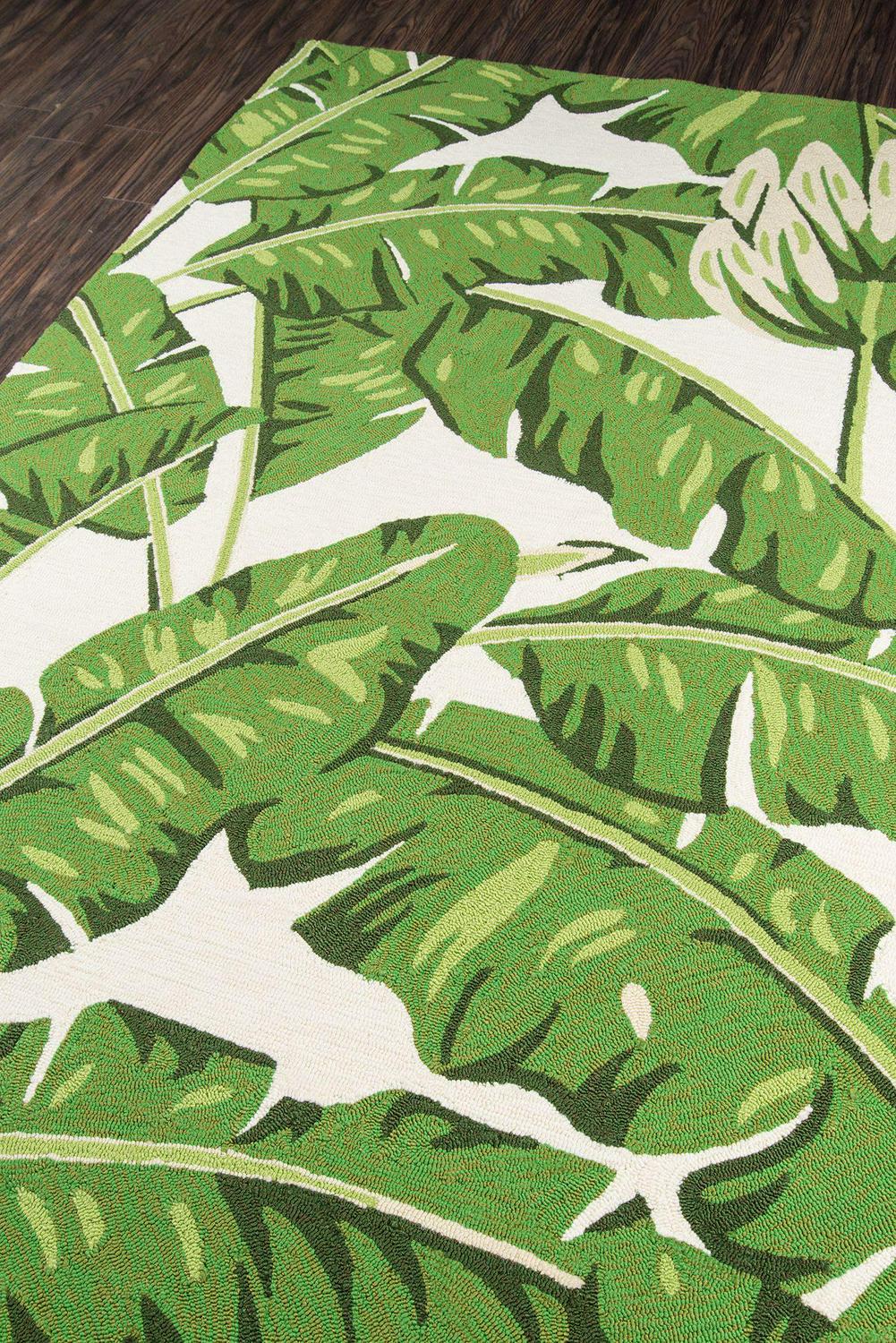 Momeni Veranda 4′ x 6′ Green and White Leaves Flowers Outdoor Rug