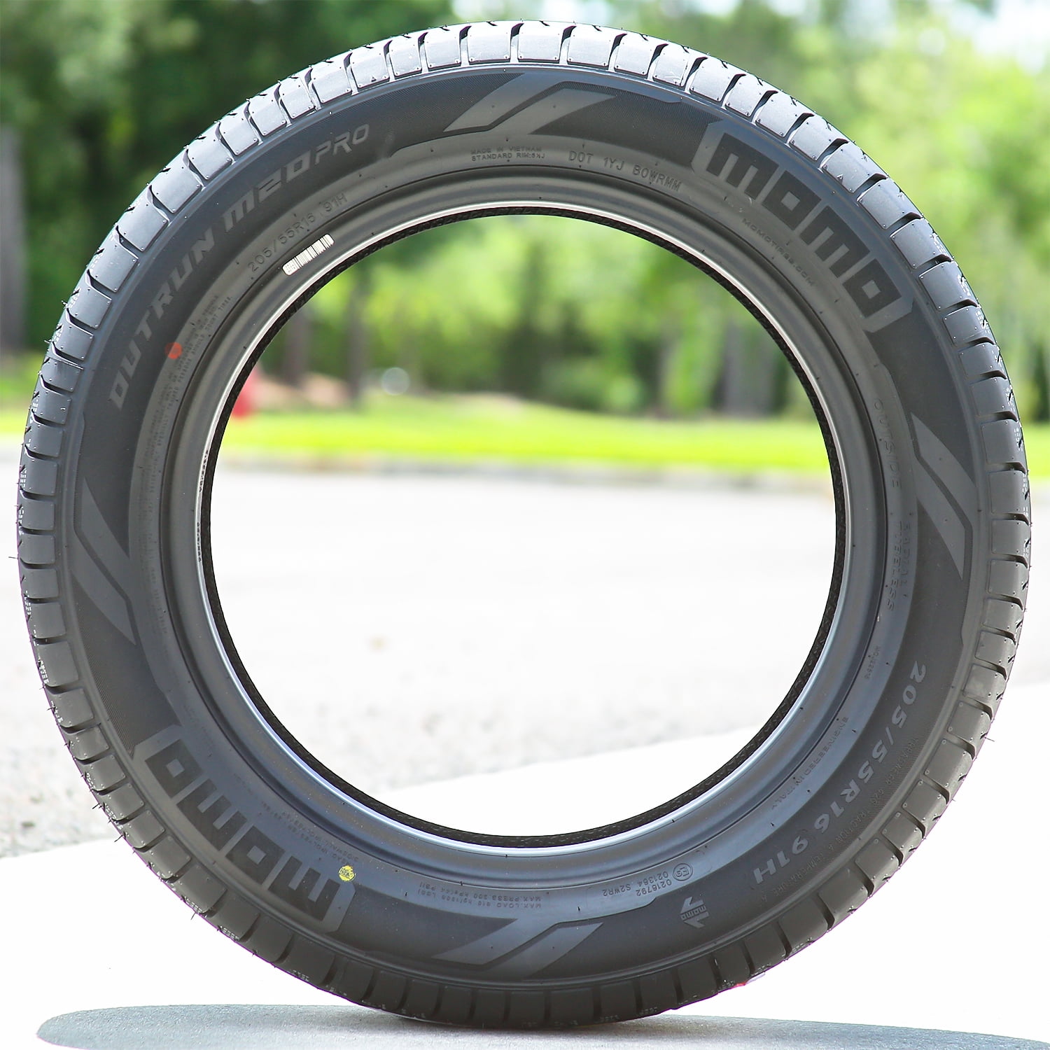 MOMO Outrun M20 Pro OVERVIEW The MOMO Outrun M20 Pro is a touring, all season tire made for passenger vehicles. This model has some performance sizes available as well. MOMO offers a 50,000 mile treadwear warranty with this model. Great controllability and maneuvering are promoted with this model. Steering responsiveness and driving stability are enhanced by the maintained surface contact. These elements ensure the tire is quicker and more precise in its response to the driver’s commands, while the structure remains stabilized under the driving pressure affecting the tire. Cornering and maneuvering are boosted by the stabilized shoulder block pattern with the siping pattern. These tread elements provide extra biting edges during maneuvering, by strengthening the tire’s grip on the surface. These elements ensure the driver’s control over the vehicle at all times. All season traction is ensured with this model. The tire combines its all season compound and ideal tread design in order to offer excellent dry, snowy, and wet-weather performance. The model’s special compound keeps the rubber pliable in changing temperatures. Ribbed elements increase the tire’s traction in dry, snowy, and wet conditions with better road contact. Hydroplaning is avoided since circumferential grooves disperse slush and water from below the footprint. High speed performance is also guaranteed. This tire upgrades its high speed durability. The optimal tread design can easily follow the road surface, while the strong construction maintains the optimal tire shape under pressure. Also, the heat-resistant compound prevents pressure accumulation along the tread area. This combination guarantees excellent high speed performance. The MOMO Outrun M20 Pro manages to keep the noise low. The passengers can enjoy high driving comfort levels by reducing road noise. This is achieved with the optimized tread elements that prevent sound wave formations. As road noise does not reach the vehicle’s cabin, the tire makes sure to promote a quiet driving experience. Manufacturers recommend changing tires every 10 years. As long as tires are properly stored before they are sold, the year of their manufacture will not shorten their service life.