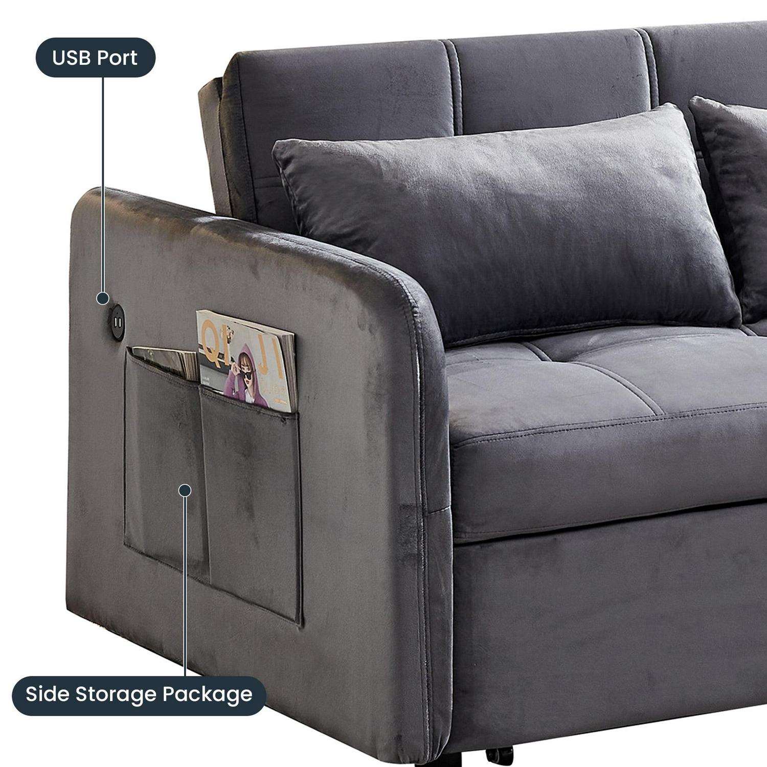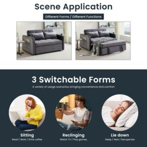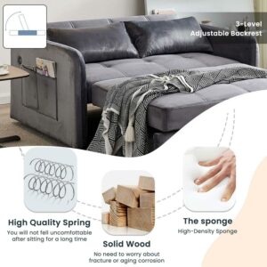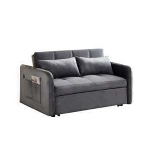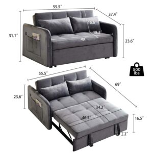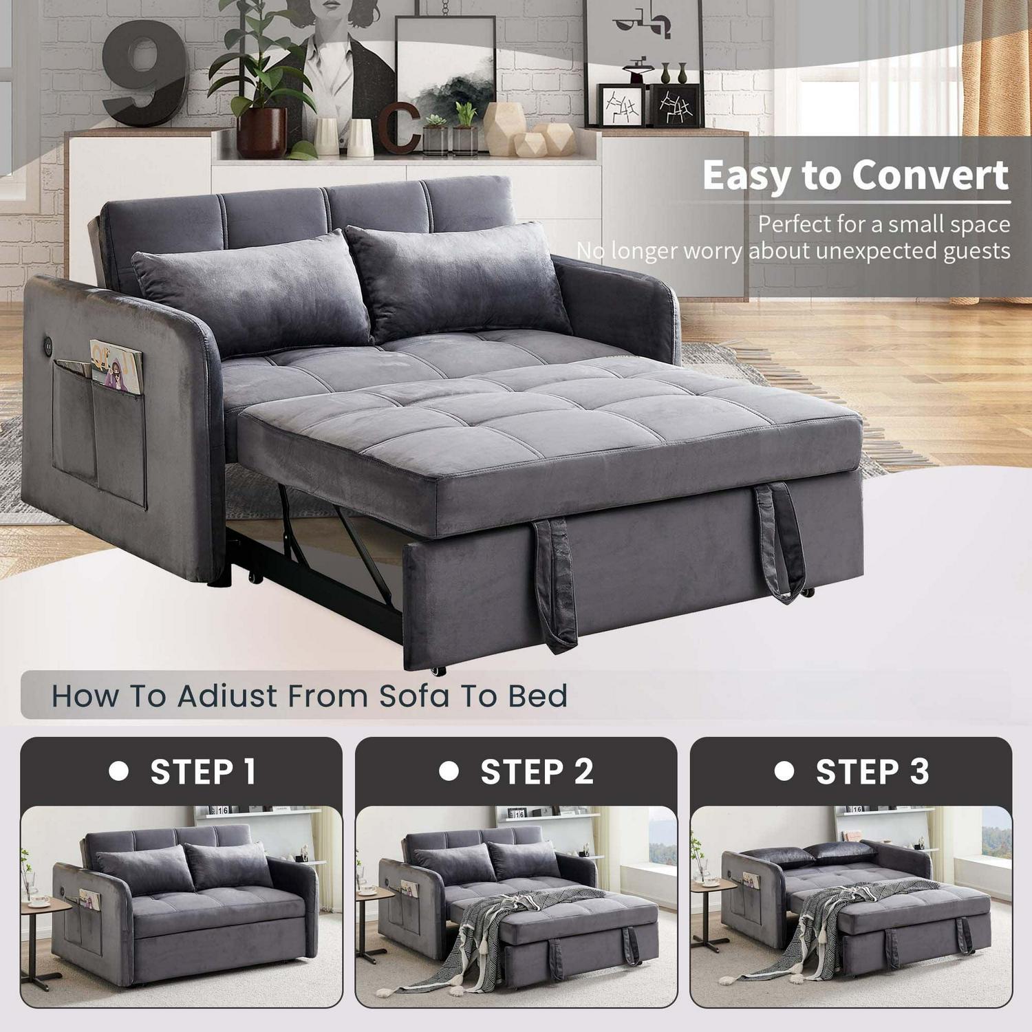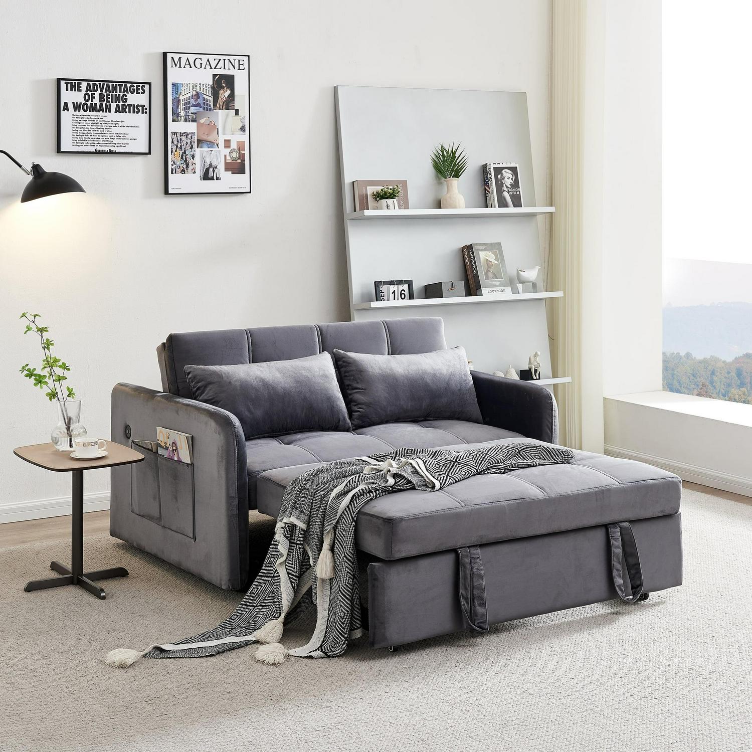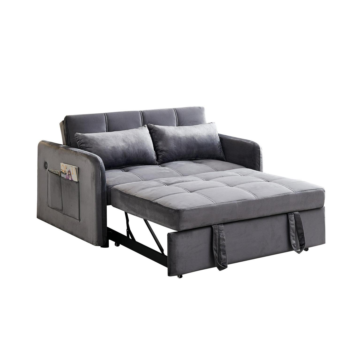 Momspeace 55.5 Pull Out Loveseats Sleeper with USB Ports and Side Pockets, Gray
