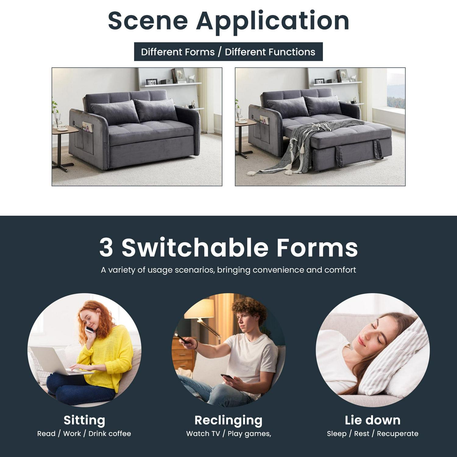 – SOFA BED COUCH – It s a multifunctional sofa bed, just put the backrest of the sofa down and pull out the front part,it can be turned into a bed.