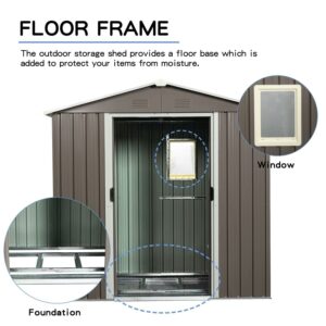 8ft x 4ft Outdoor Metal Storage Shed with Lockable Door for Backyard Momspeace manufactures products that meet the industry s stringent requirements, our outdoor storage series offers spacious, convenient storage of your landscaping equipment, gardening supplies, tools & accessories, and more while keeping them secure and protected. The upgraded thickened panel guarantees durability and longer service life. This MSP-GND8-002 shed utilizes sui generis aluminum frames which greatly increase the overall sturdiness. On top of that, the galvanized steel panels, coated with eco-friendly painting, can endure harsh weather for at least 6 years. Sturdy and reinforced interior structure to make the shed withstand as long-lasting.