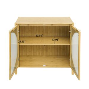 Momspeace Bamboo Cabinet with Two Glass Doors and Adjustable Shelf, Sideboard for Living Room, Kitchen- Natural