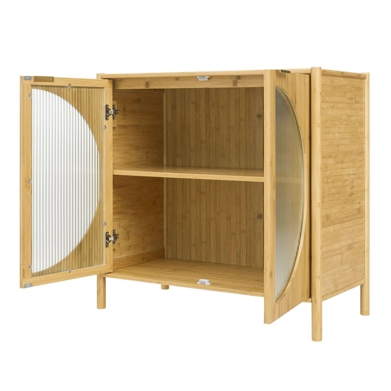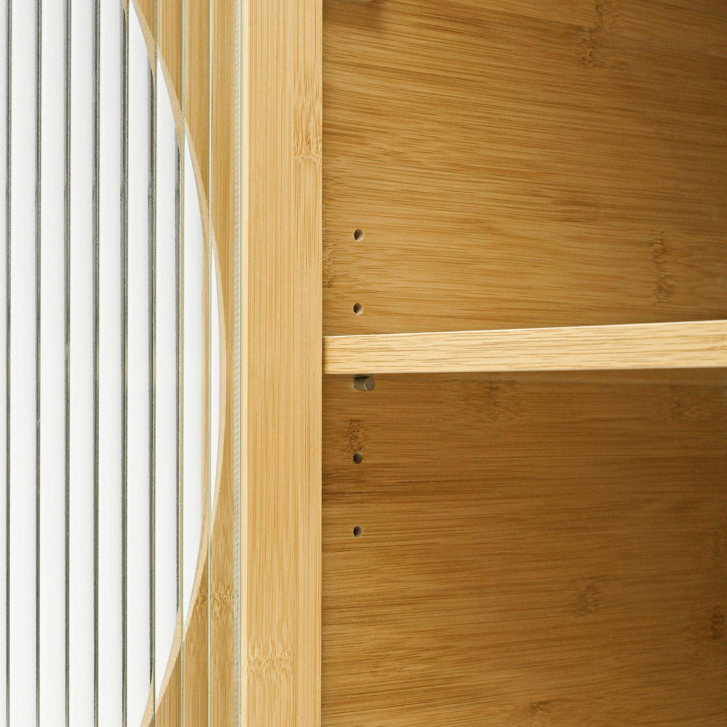 UNIQUE BAMBOO MATERIAL – The bamboo cabinet frame is made of natural and environmentally friendly bamboo, with full texture and varnish to make it feel delicate and soft. And its hygroscopic and heat-absorbing properties are higher than wood. The simple shape of the bamboo cabinet makes the storage simpler. The door panel is made of fluted glass as decorative surface, wave groove, with fuzzy fog surface, can well block the external sight, to ensure the privacy.
