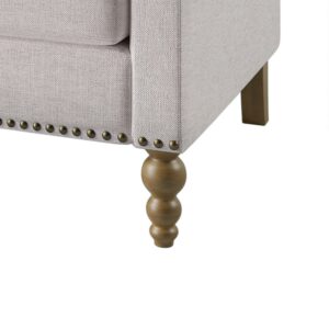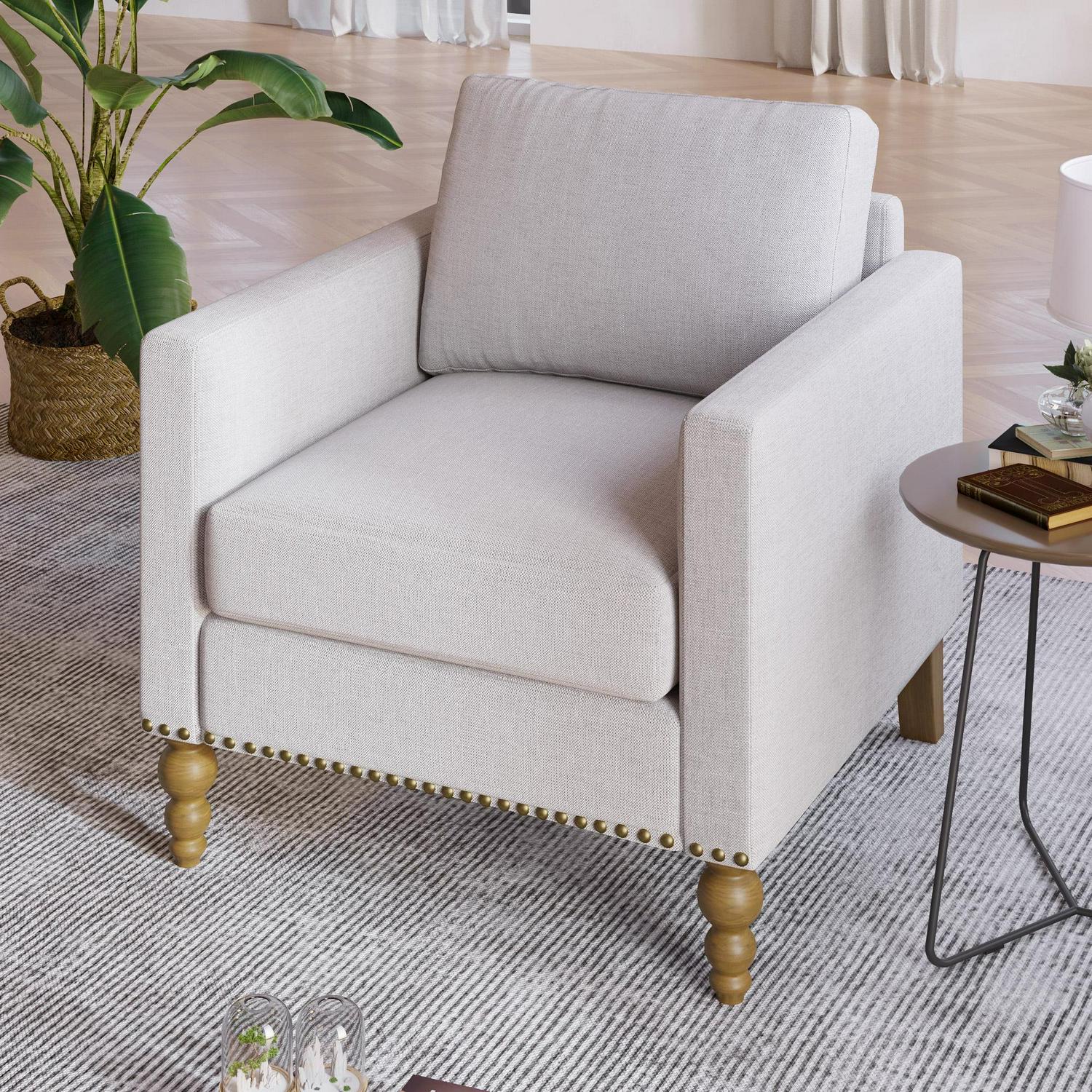 Momspeace Mid-century Armchair with Bronze Nail Heads and Wooden Legs, Single Sofa Chair for Living Room – Beige