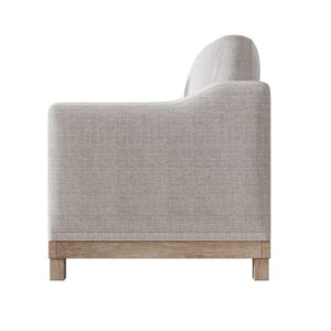 · Sturdy Frame:Solid rubber wood exposed frame with natural variation. Kiln-dried wood helps prevent warping, splitting, cracking and developing mildew. A solid wood frame, base and legs provide strong structure softened by plush foam padding and neutral-hued upholstery (grey or beige).