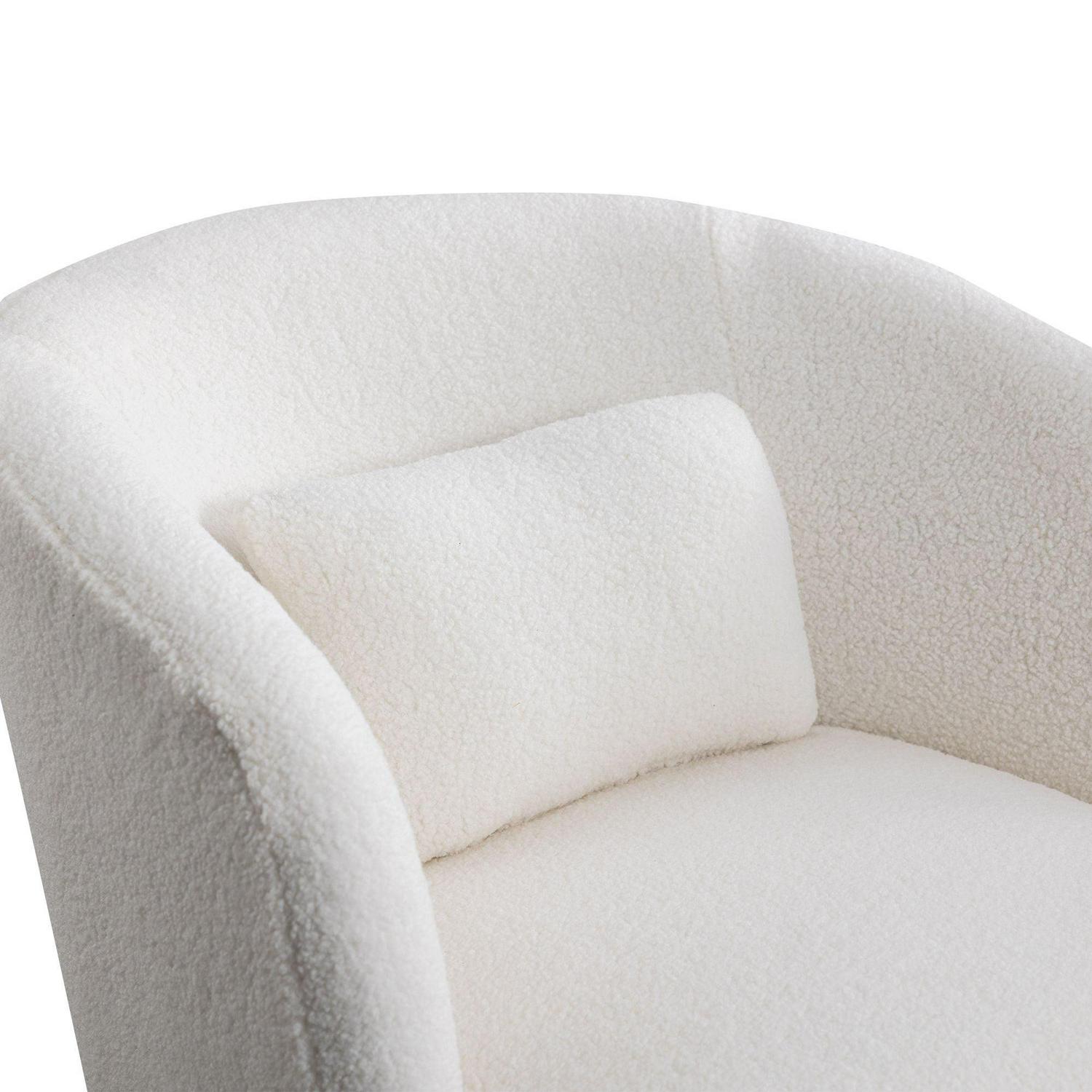 Momspeace Modern Accent Chair Upholstered Curved Backrest Single Sofa with 1 Pillow for Living Room, Bedroom – Ivory