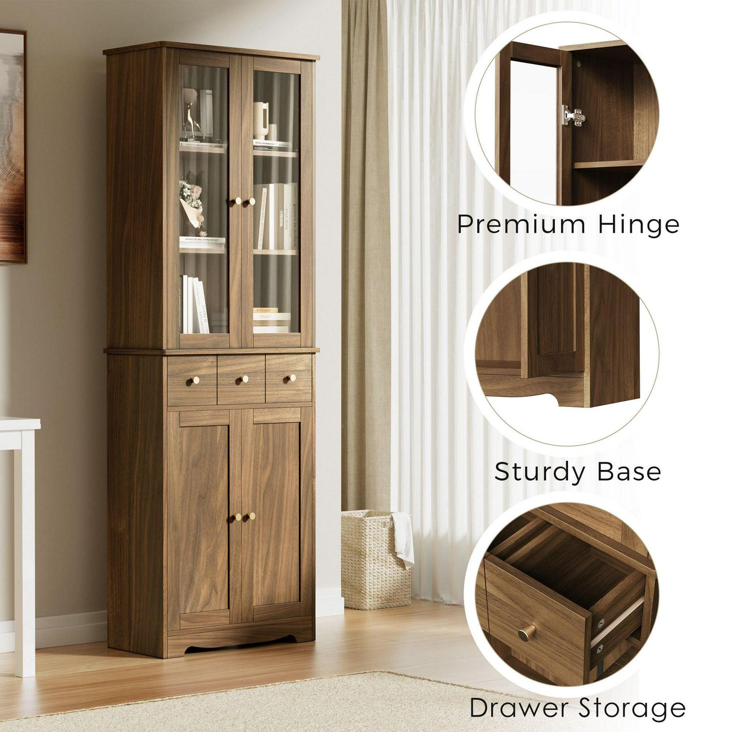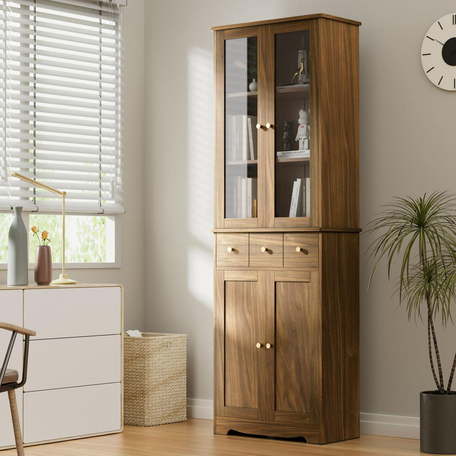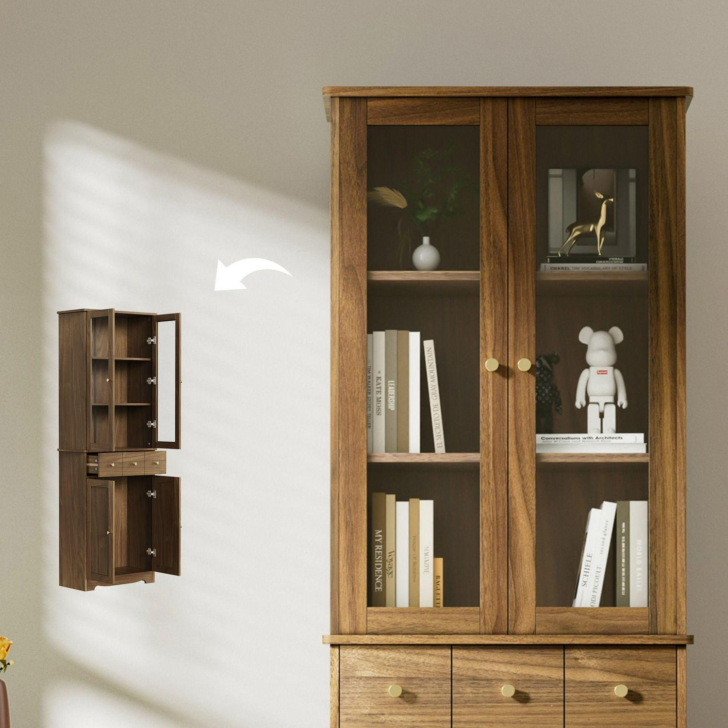 The Momspeace MSP-BFB10-001 Modern Bookcase with Tempered Glass Doors and Drawers, adds extra storage to your home without taking up too much space. The three-tiers storage design allows you to store a variety of items that are not limited to books and papers and can be placed in a variety of spaces. The first tier of this bookcase with glass doors has two height-adjustable shelves so you can adjust the shelf height to suit your storage needs. You can arrange and display books, photos and frames, flowers and vases, candles and more. The surface comes with wood plank grain and natural wood color makes the bookcase full of natural beauty and can match almost any room, apartment or office style in your home.