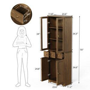 Momspeace Modern Bookcase with Tempered Glass Doors and Drawers, Large Storage Bookshelf for Home Office -Natural Wood