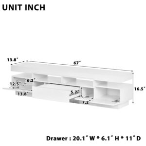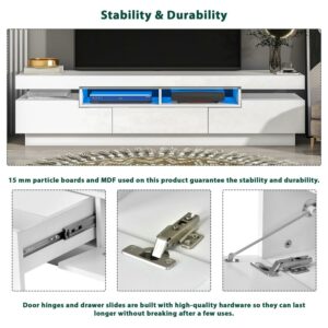 Momspeace Modern High Gloss TV Stand with 4 Open Shelves and 16-Color RGB LED Strip Lights for TVs up to 75” -White