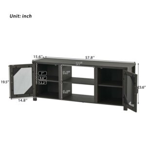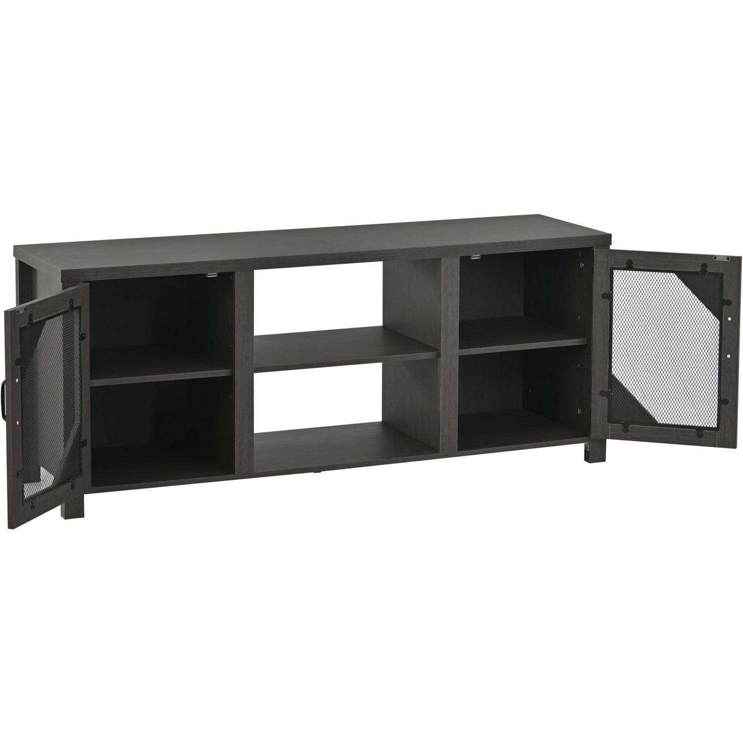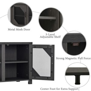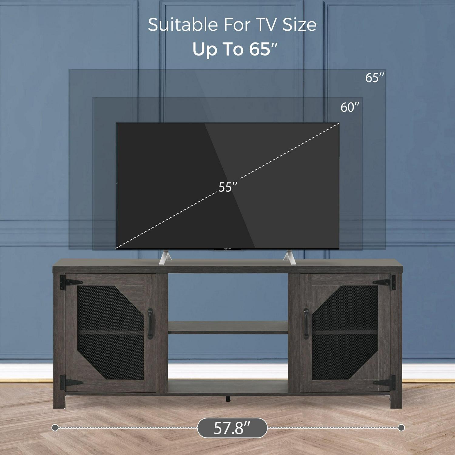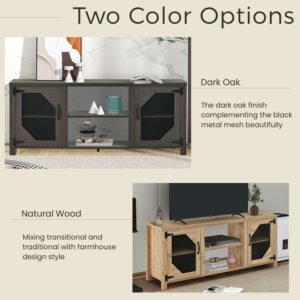 Momspeace Modern Industrial TV Stand with Metal Mesh Doors and Large Storage Space for TVs up to 65” -Dark Oak