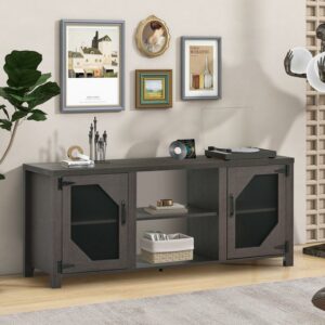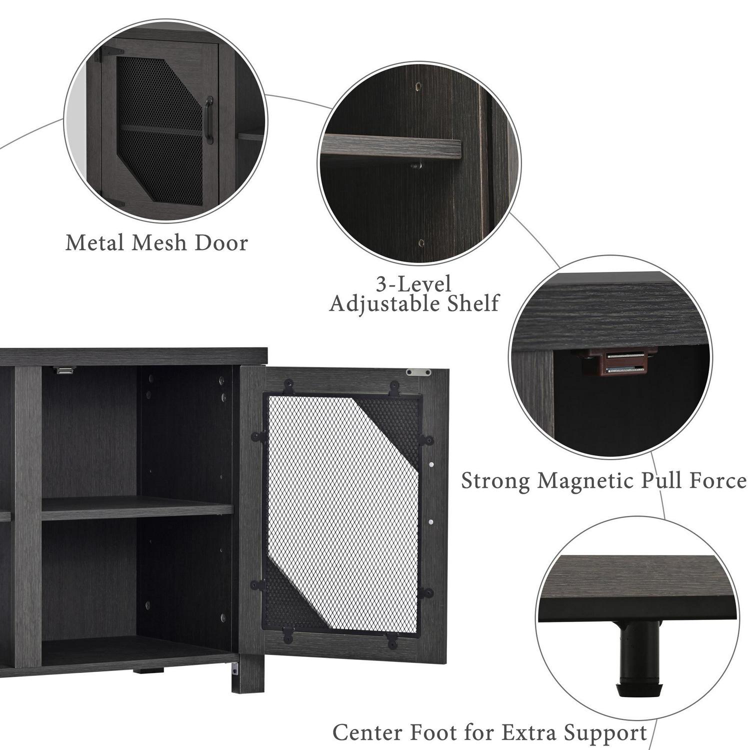 OUTSTANDING DETAILS – Rust-resistant door latches increase the life of the TV stand, giving you a durable experience. The magnetic door lock design not only adds a touch of serenity, but also ensures that the doors close securely. The height-adjustable shelves in the cabinets on both sides of the TV stand have three heights for adjustment, maximizing the efficiency of the storage space inside the TV stand and enhancing versatility.