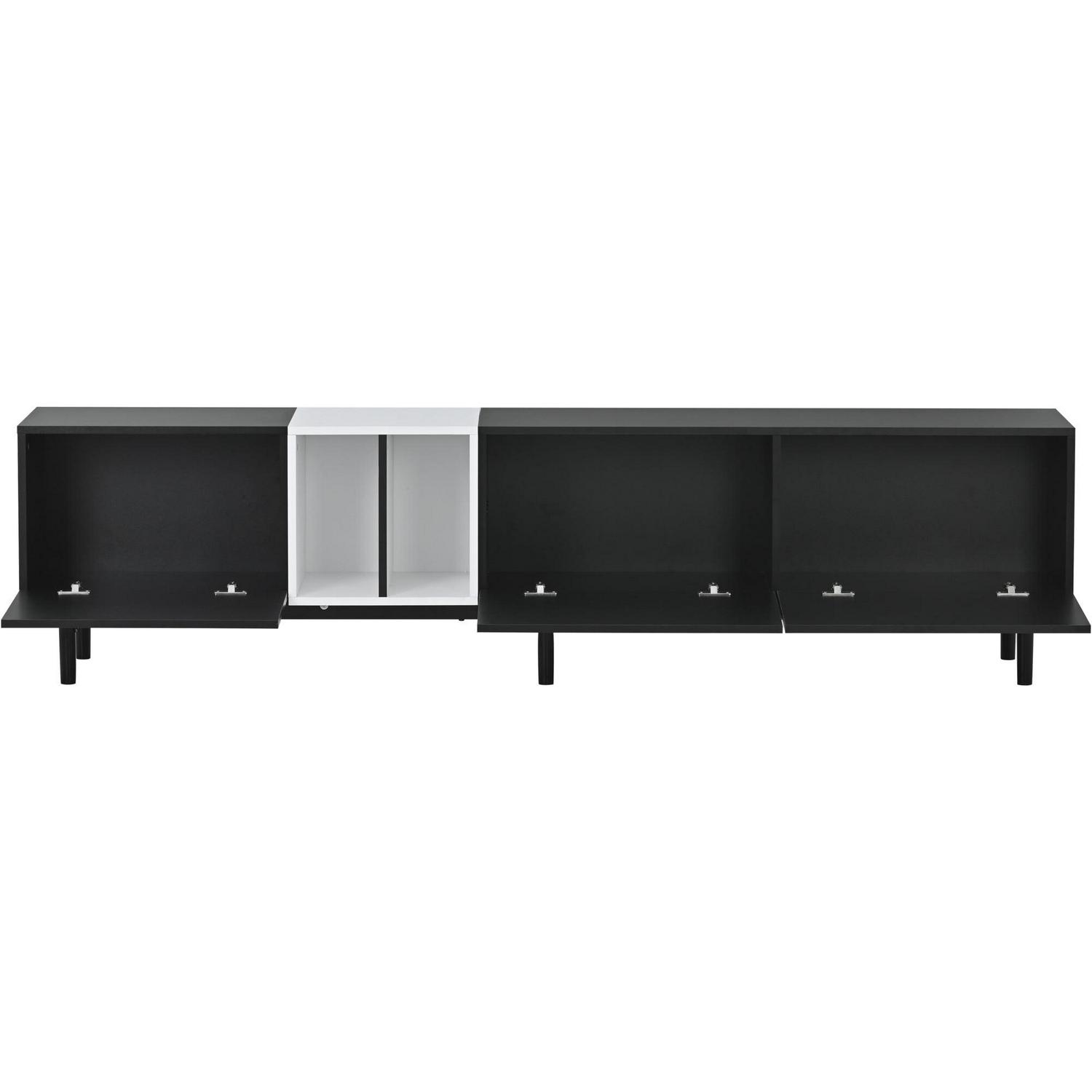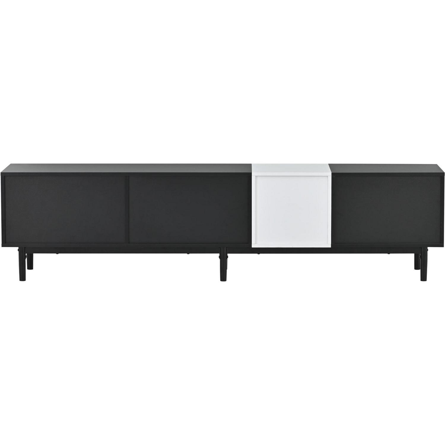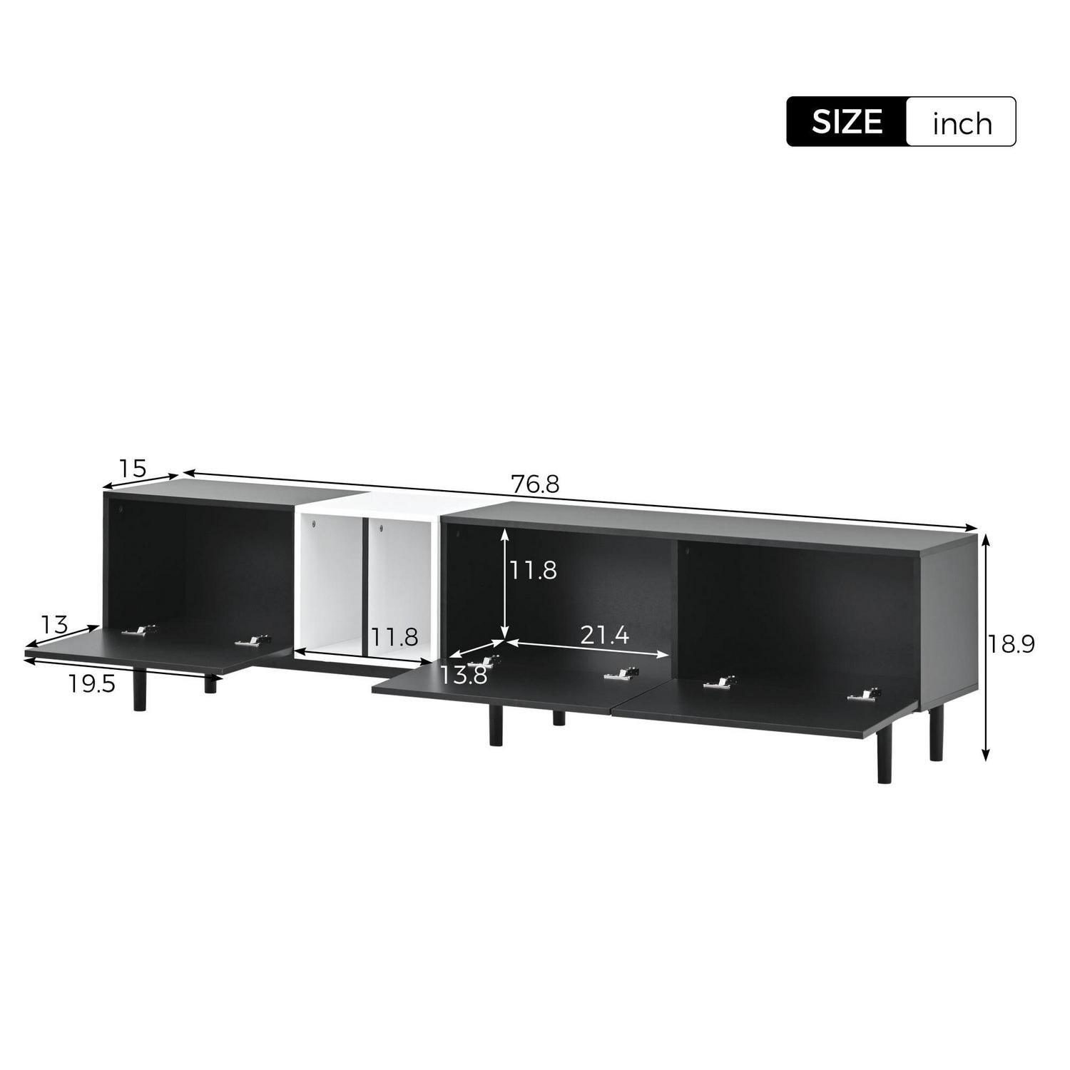 SINGULARLY MINIMALISTIC DESIGN – Embodied in a two-color patchwork pattern, our TV stand epitomizes simplicity and individuality. Tailored for contemporary minimalist decor, it effortlessly harmonizes with a diverse range of design motifs, making a statement that transcends convention.