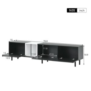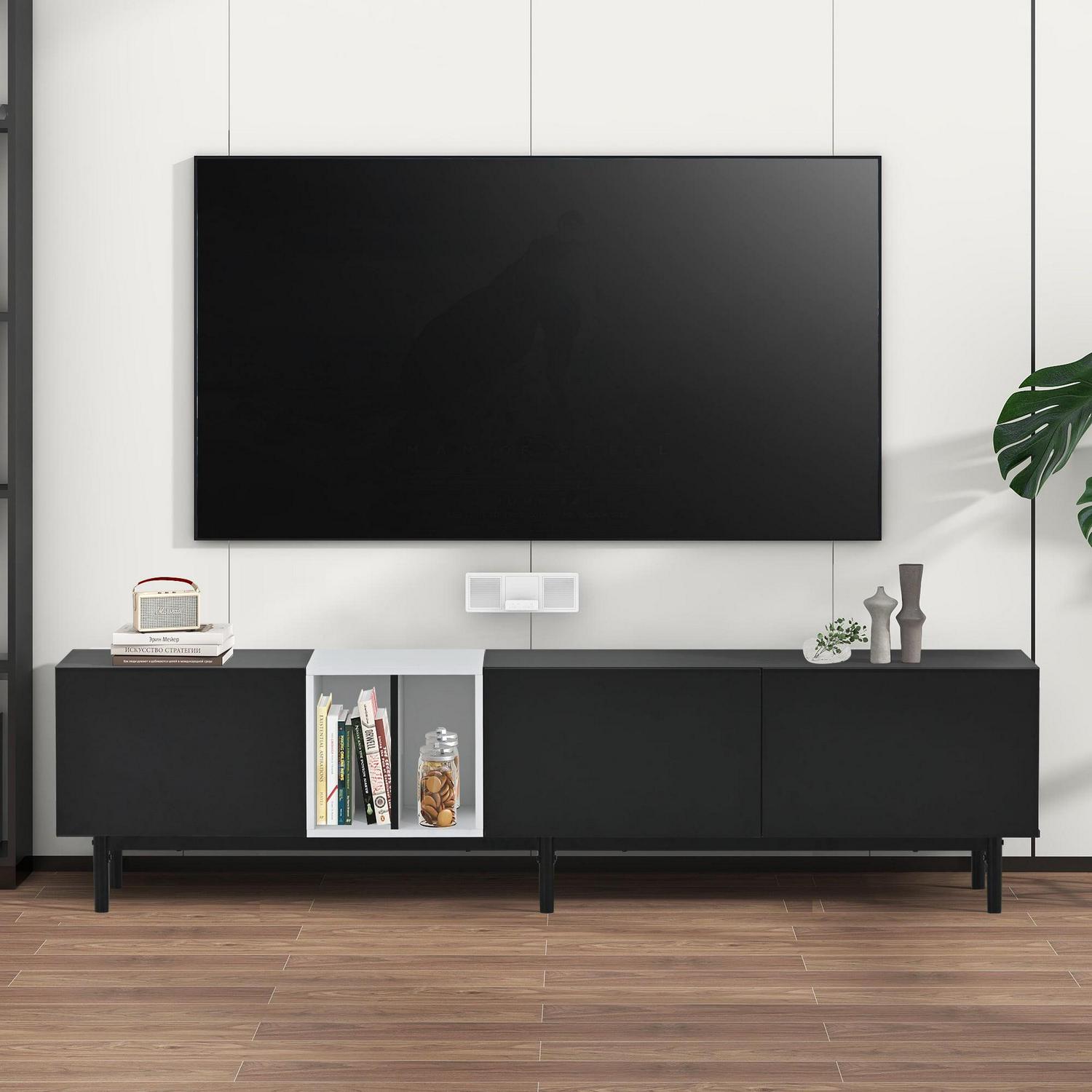 Momspeace Modern Minimalist TV Stand with 3 Drop-down Doors and Ample Storage Space for TVs up to 80” – Black