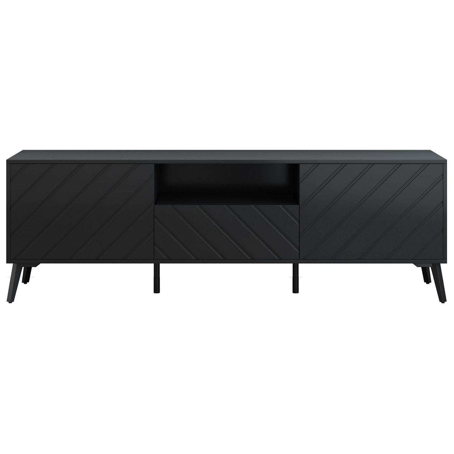 Momspeace Modern Minimalist TV Stand with Adjustable Shelves and Large Storage Space for TVs up to 70” -Black