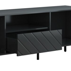 The Momspeace MSP-LVL2-019 Modern Minimalist TV Stand with Adjustable Shelves and Large Storage Space for TVs up to 70” strengthens your entertainment experience. With its sleek contours and immaculate lines, this TV stand epitomizes a minimalist and contemporary aesthetic that effortlessly complements any modern household. Equipped with two doors and a convenient drawer, the TV stand offers generous storage capacity, maintaining an uncluttered space. Crafted from robust wood, the TV stand’s durable construction is fortified by the presence of sturdy metal legs, ensuring steadfast stability and long-lasting integrity for your TV stand. Redefine your living area with this fusion of chic design and pragmatic utility.