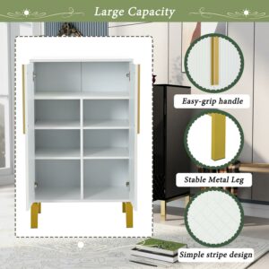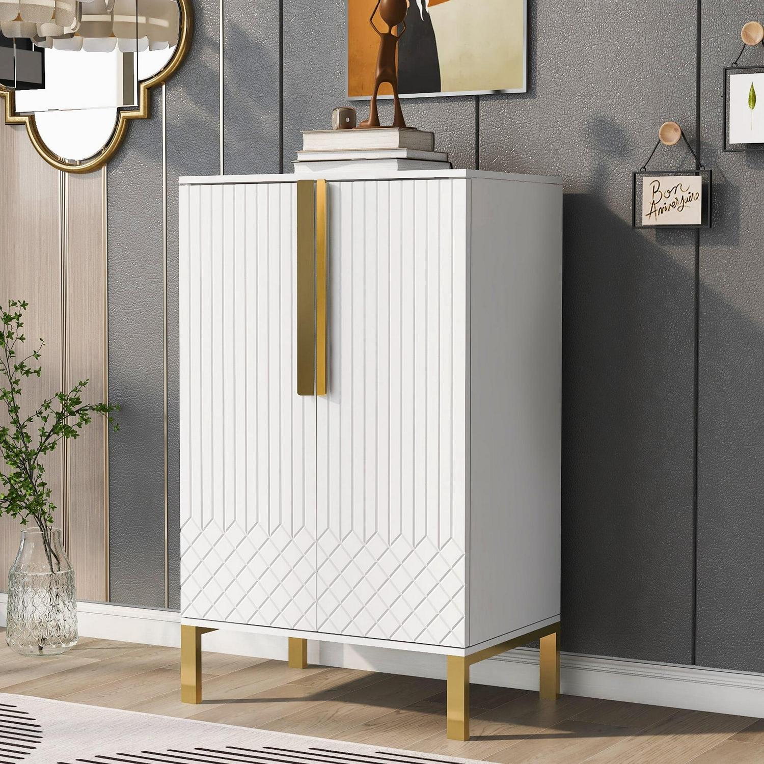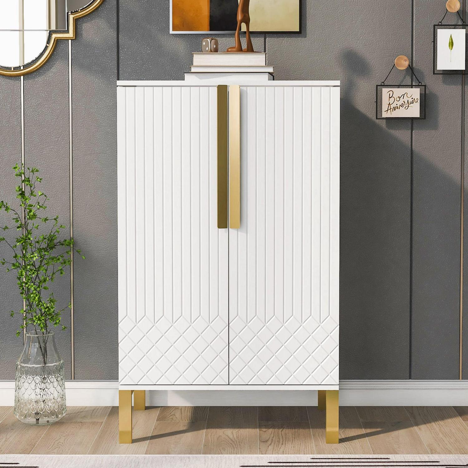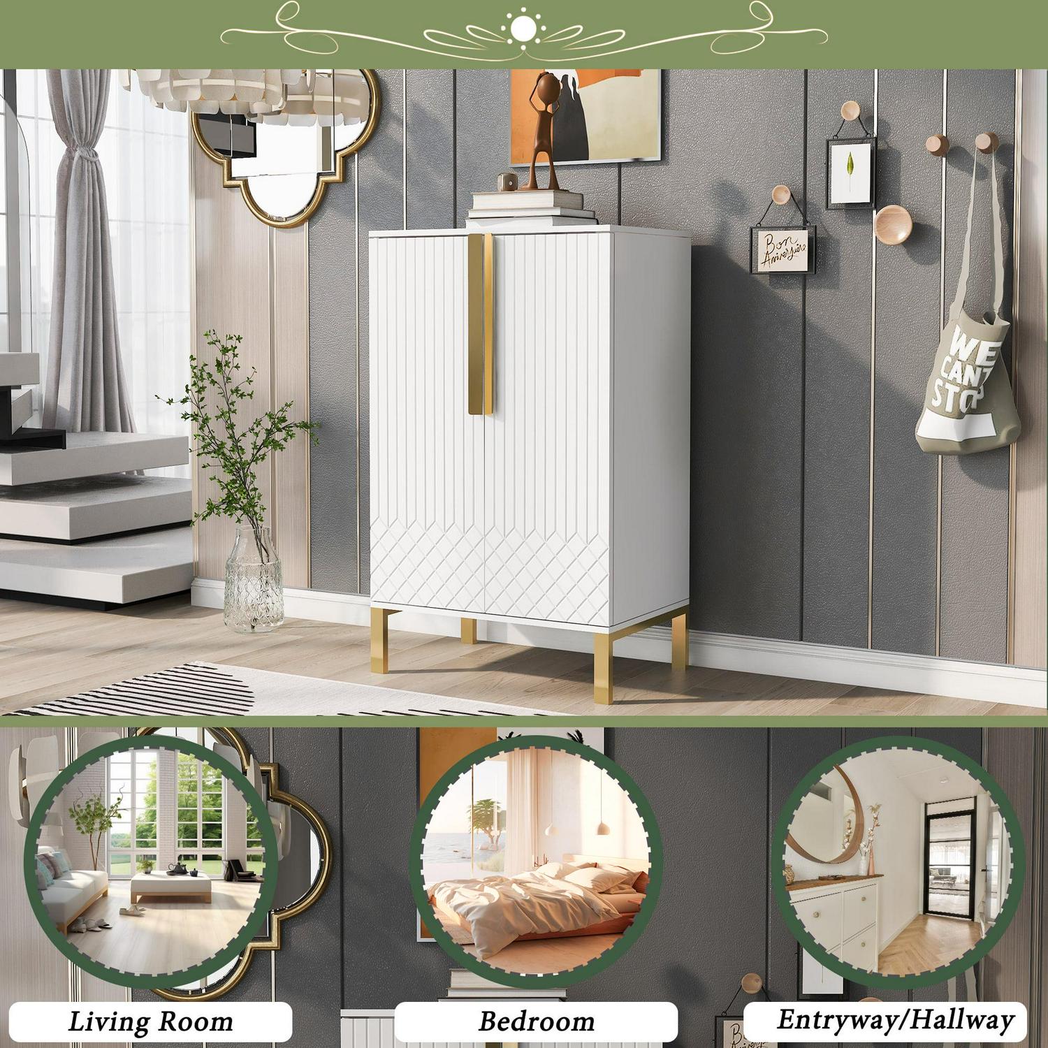 MODERN DESIGN – The shoe cabinet designed with simple and smooth lines, along with the golden handles and metal legs which adds more modern style to your home, is ideal for storing shoes or displaying your favorite decorations and collections. Simple modern design is beautiful; regardless of your home’s design, our shoe cabinet will complement it nicely.
