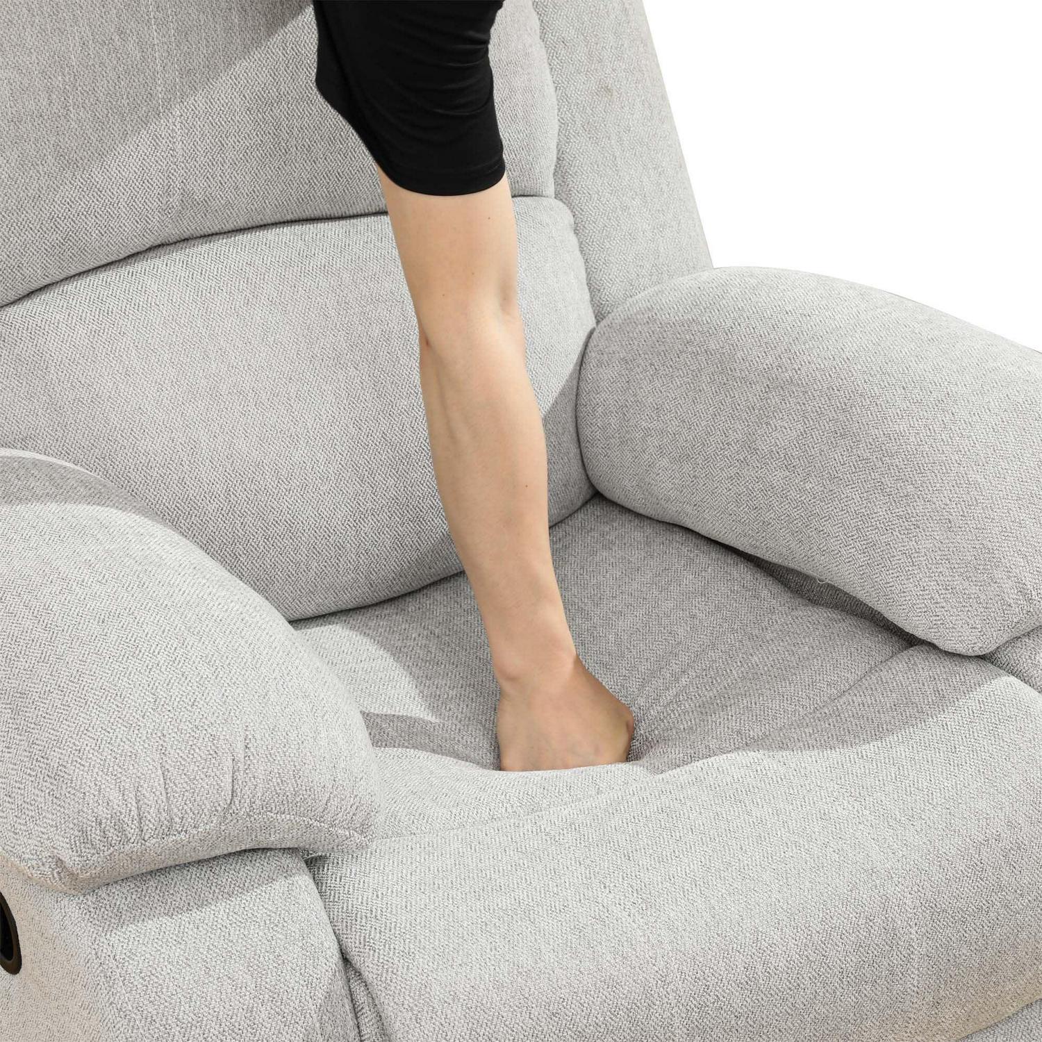 Momspeace Single Manual Recliner Chair,Breathable Flannel Sofa for Living Room,Bedroom,Grayish-White