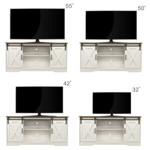 MODERN FARMHOUSE DESIGN – The TV stand features trendy barn doors that add rustic charm to your living room, hallway or bedroom. The combination of the sliding barn doors and the white stand creates a cohesive farmhouse aesthetic. The stable and sturdy platform can accommodate most flat screen TVs up to 65″.
