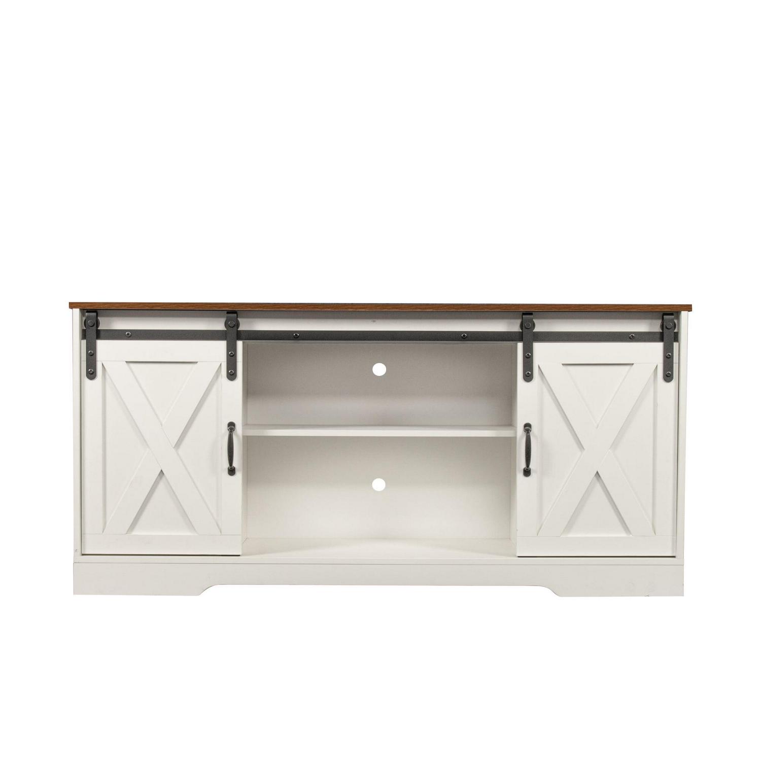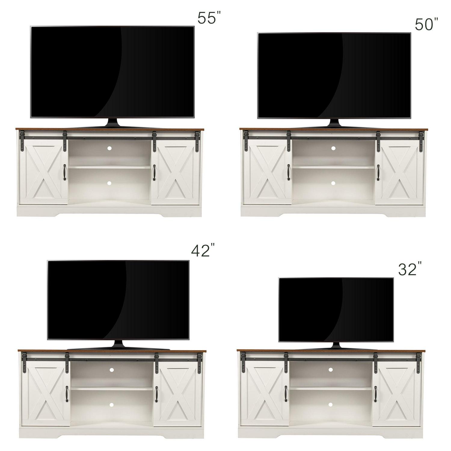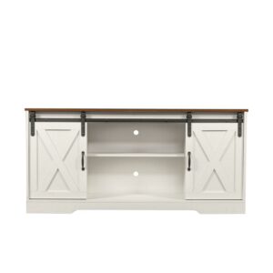 Momspeace TV Stand with 2 Sliding Barn Doors and Adjustable Shelves for TVs up to 65 -White