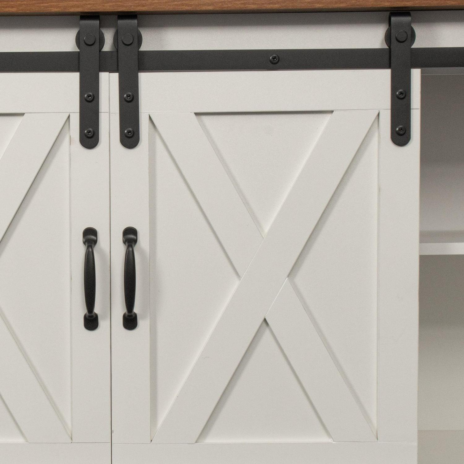 GREAT WOOD TEXTURED SURFACE TABLE – The barn door stand made from high-grade certified MDF for long-lasting construction. Featuring barn door inspired cabinet fronts for a country feel.