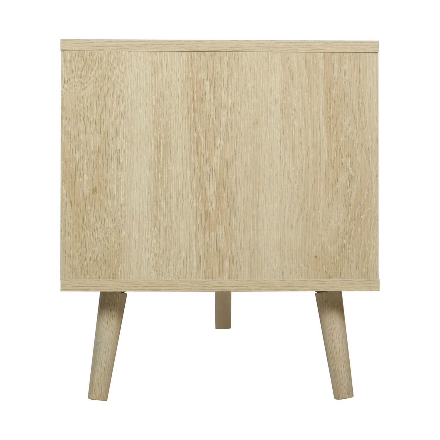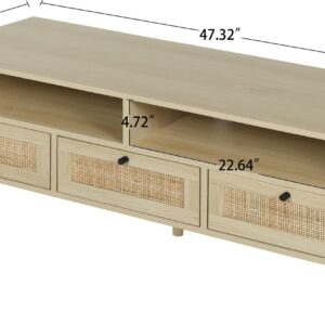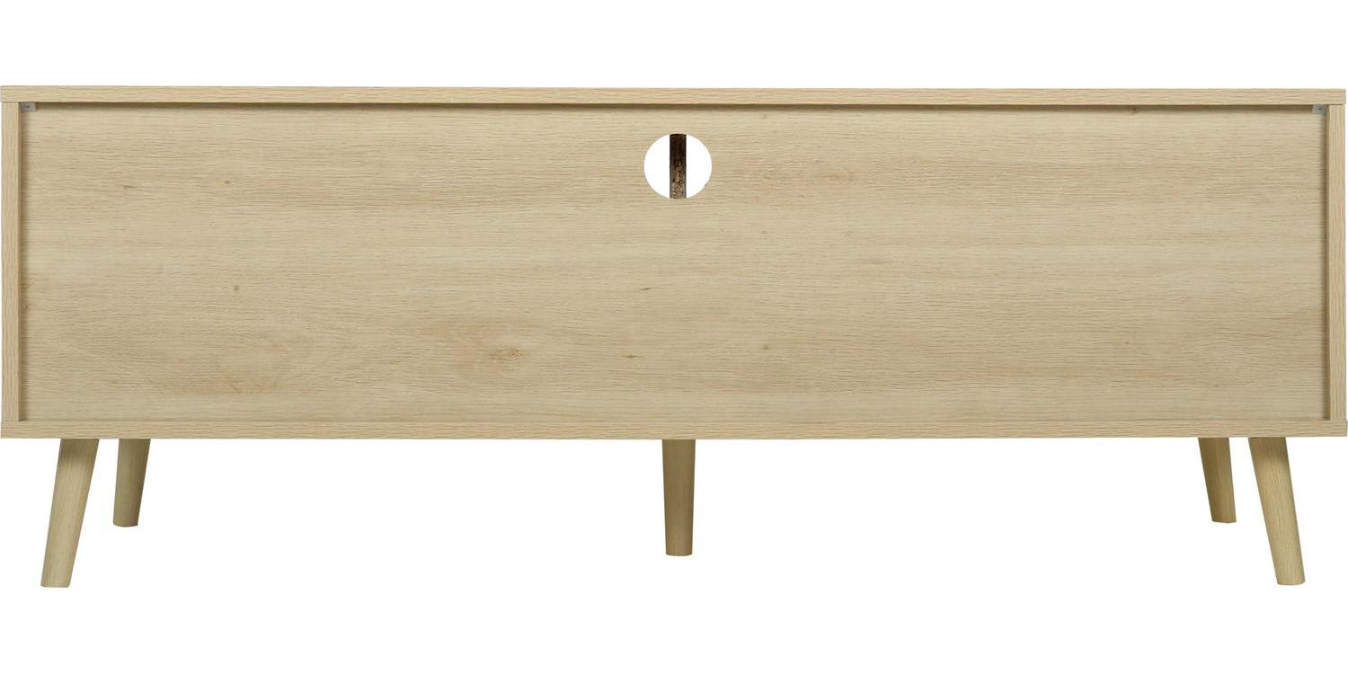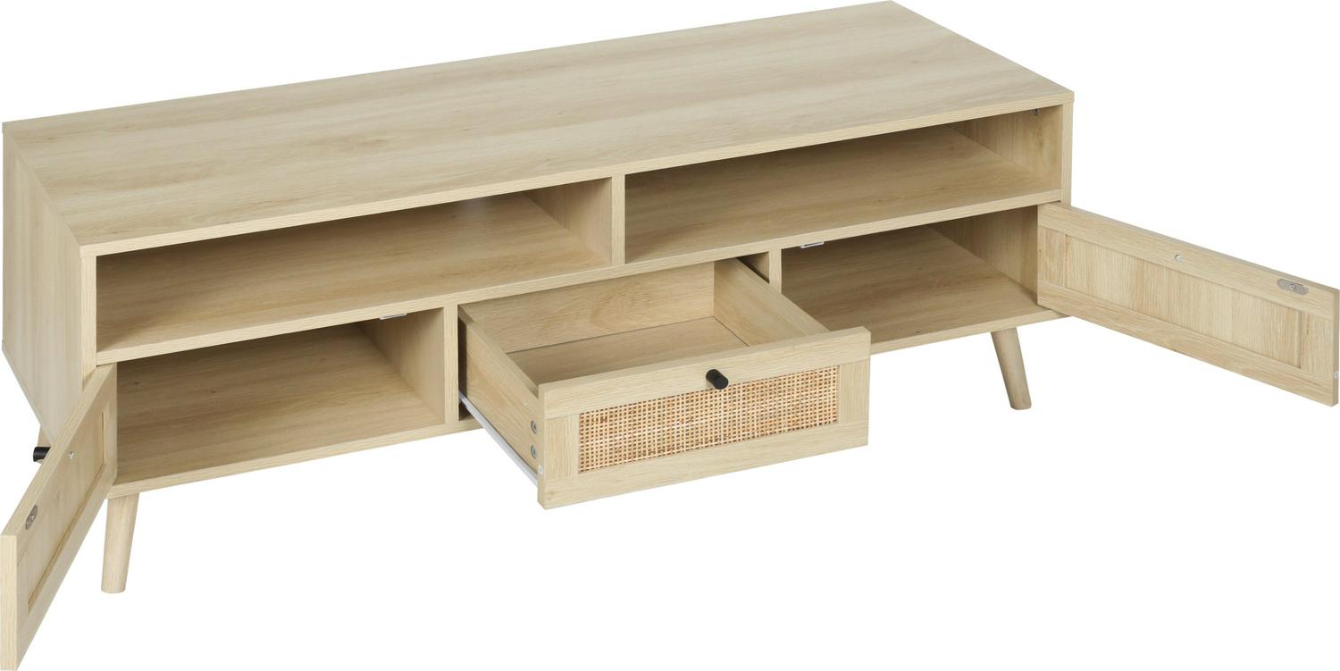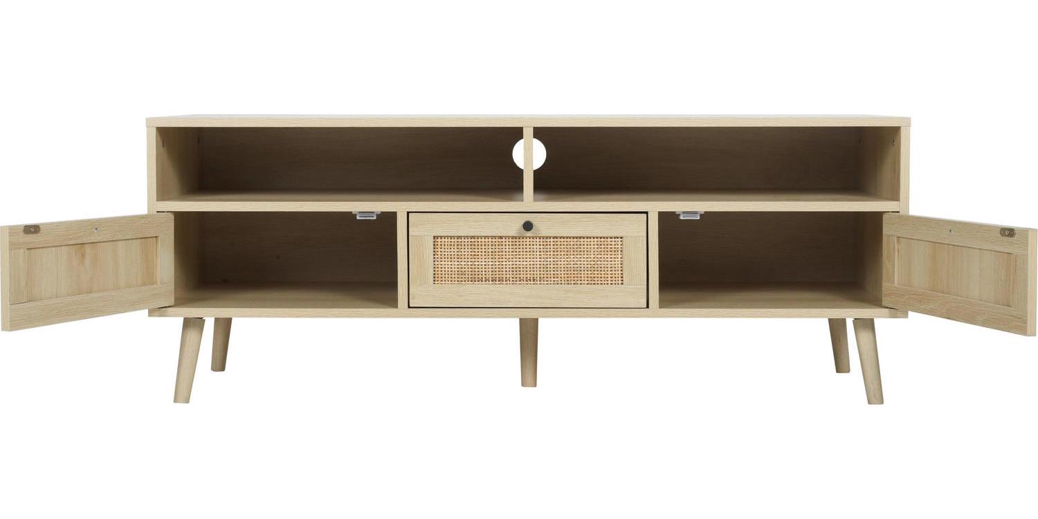 Momspeace TV Stand with Compartments and Rattan Doors, TV Console Table for Living Room – Oak