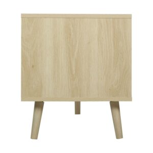 ENHANCED DECORATIVE ELEMENT – With its delicate appearance and vintage oak finish, the TV stand adds a touch of beauty and sophistication to your living room. Its presence next to your couch exudes a cozy and inviting atmosphere. The intricate design of the rattan doors, combined with the warm oak color, infuses your living space with a sense of vintage allure, offering a versatile canvas for various decorative styles.