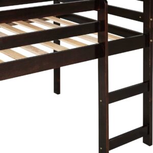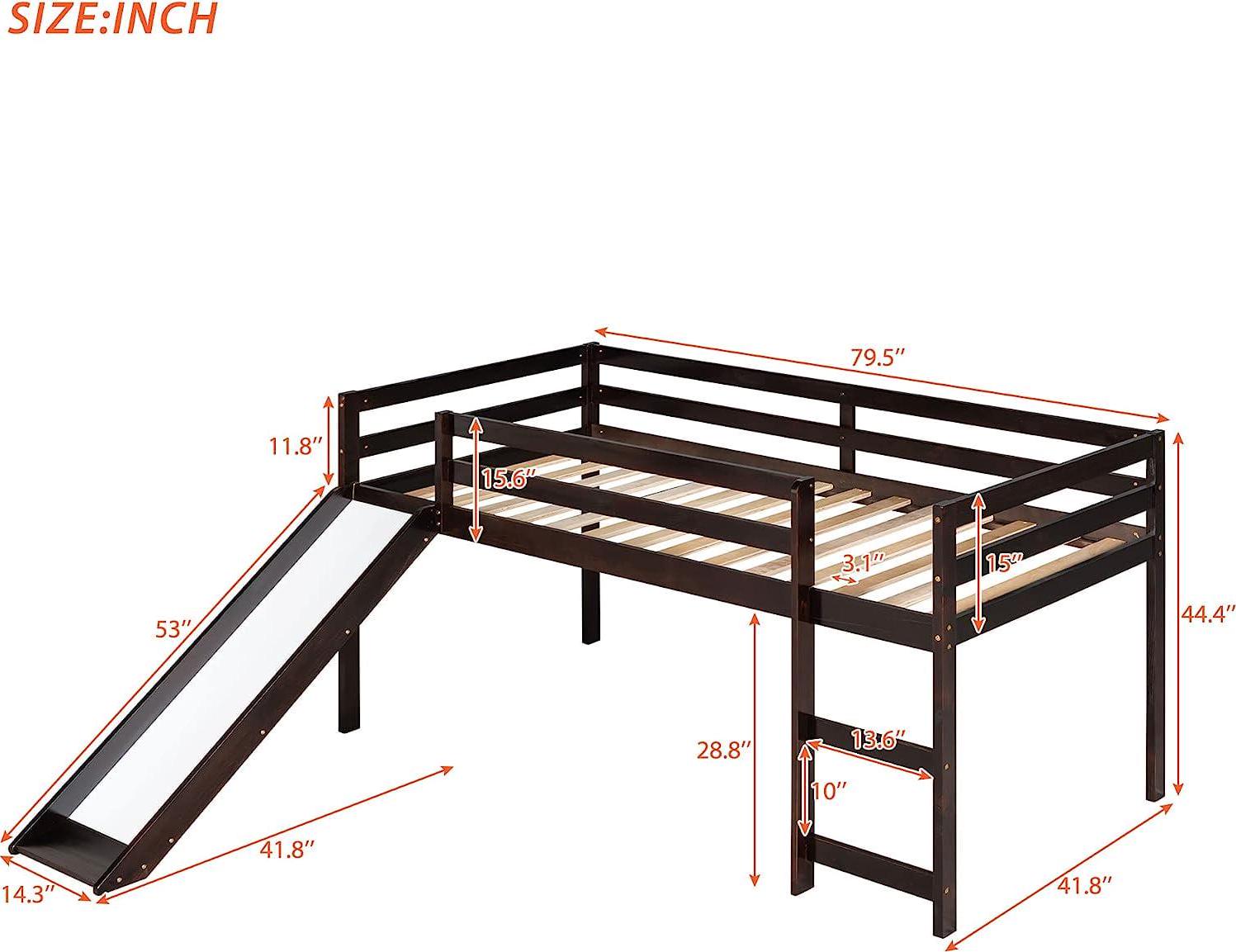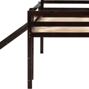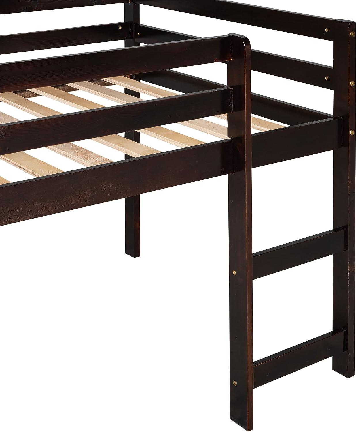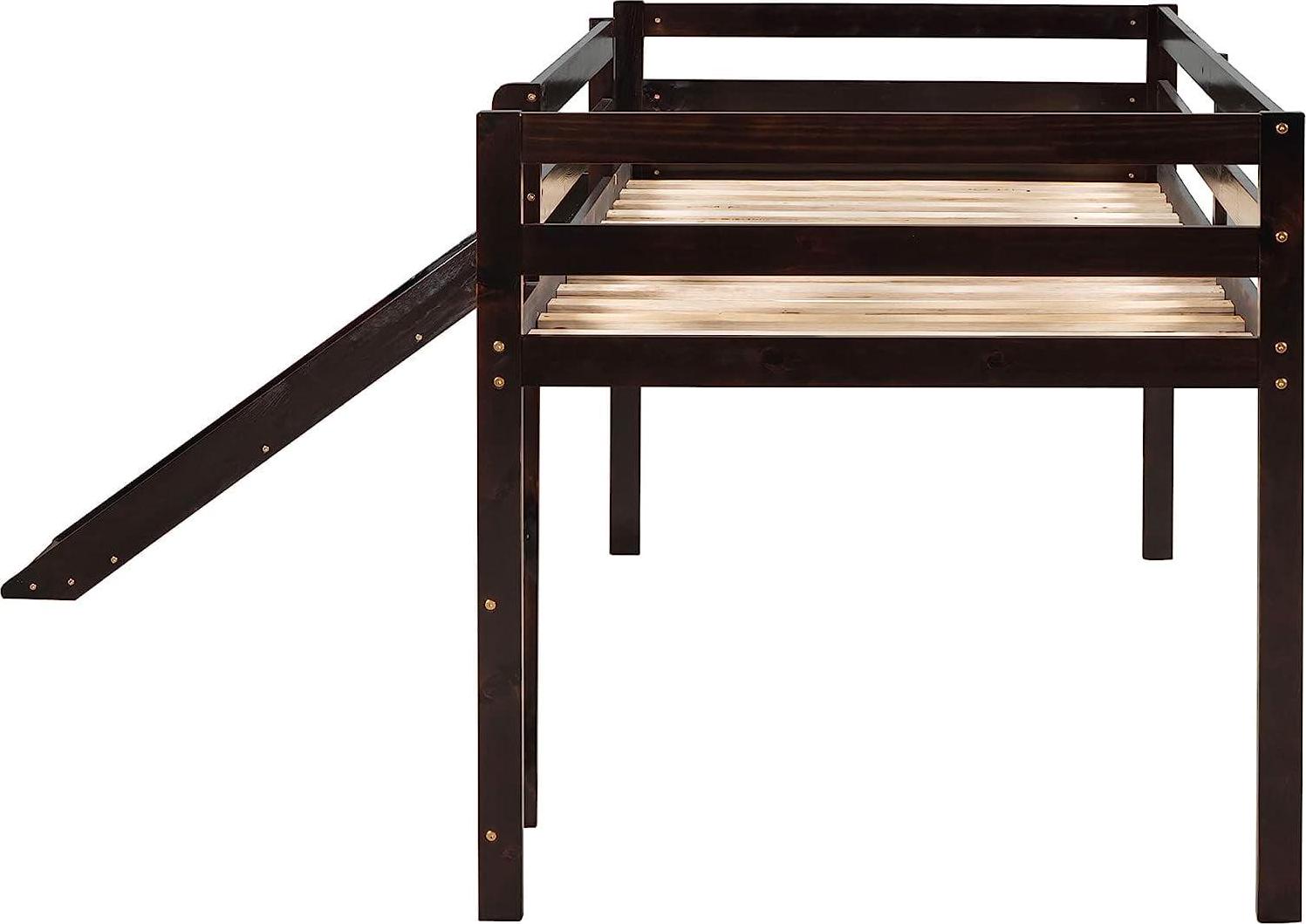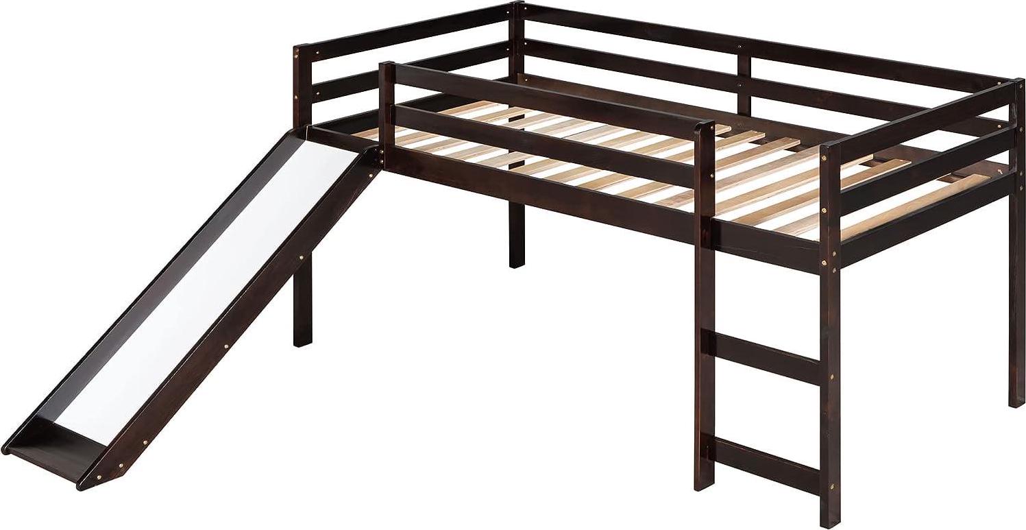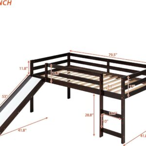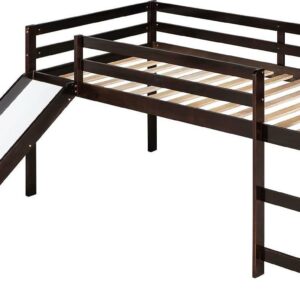 Momspeace Twin Size Junior Wood Loft Bed with Slide Loft Bunk Bed Frame for Girls Boys,No Box Spring Needed – Black