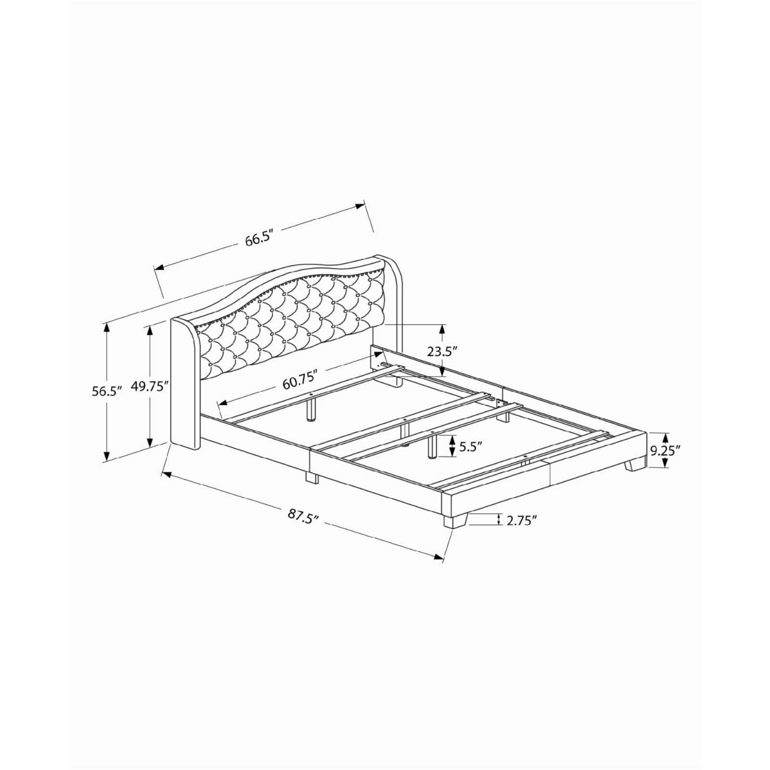 Monarch Specialties Velvet Tufted Bed with Chrome Trim, Light Grey, Queen