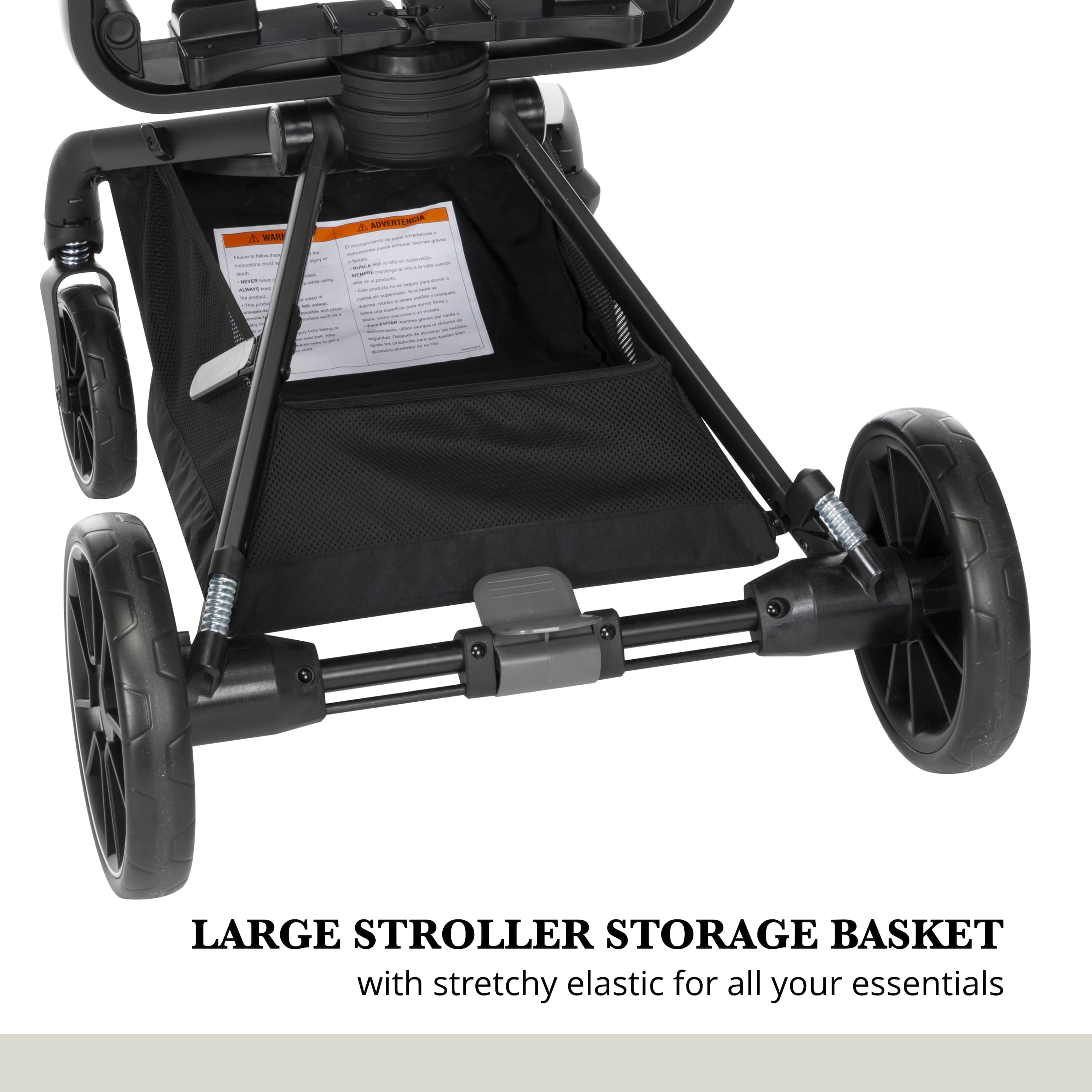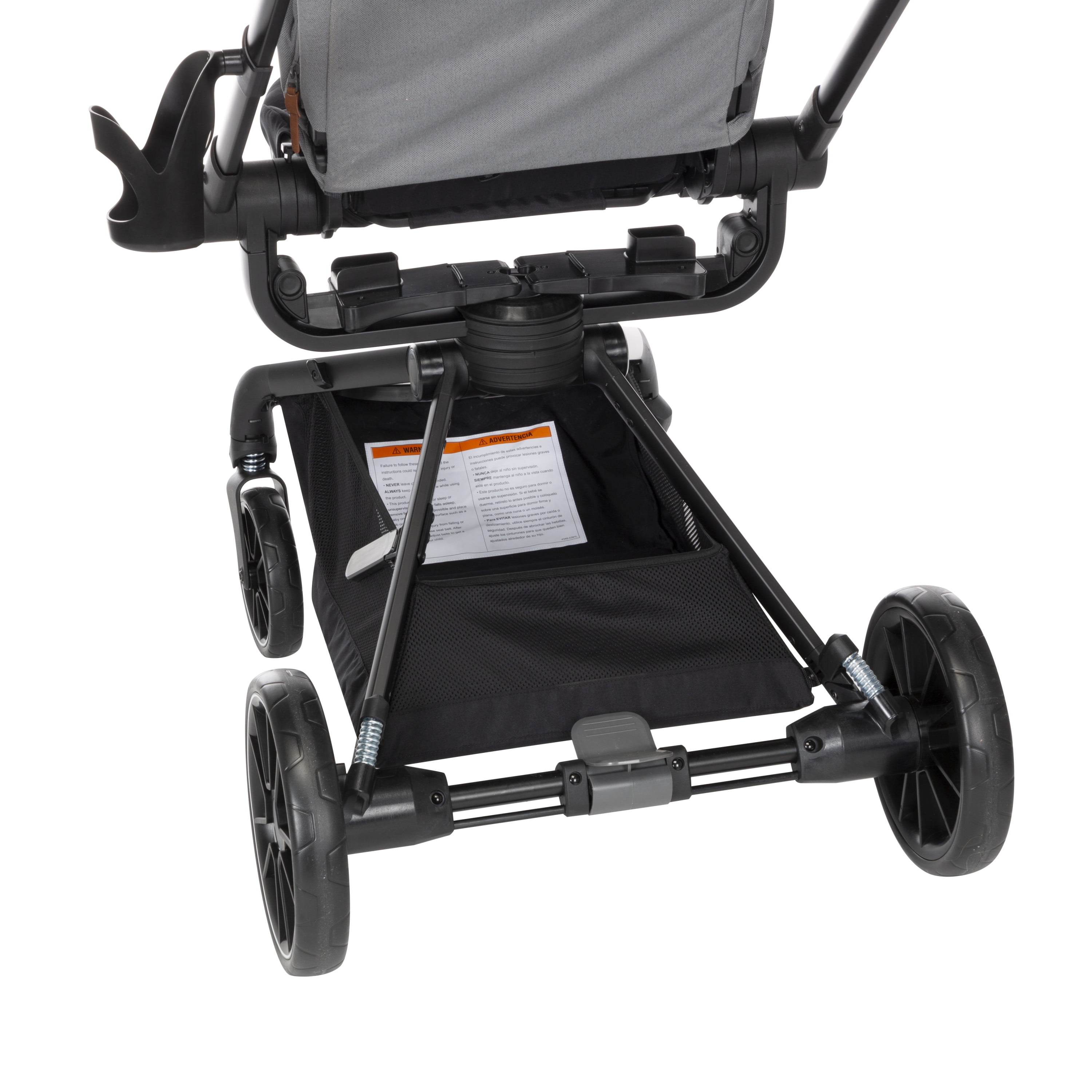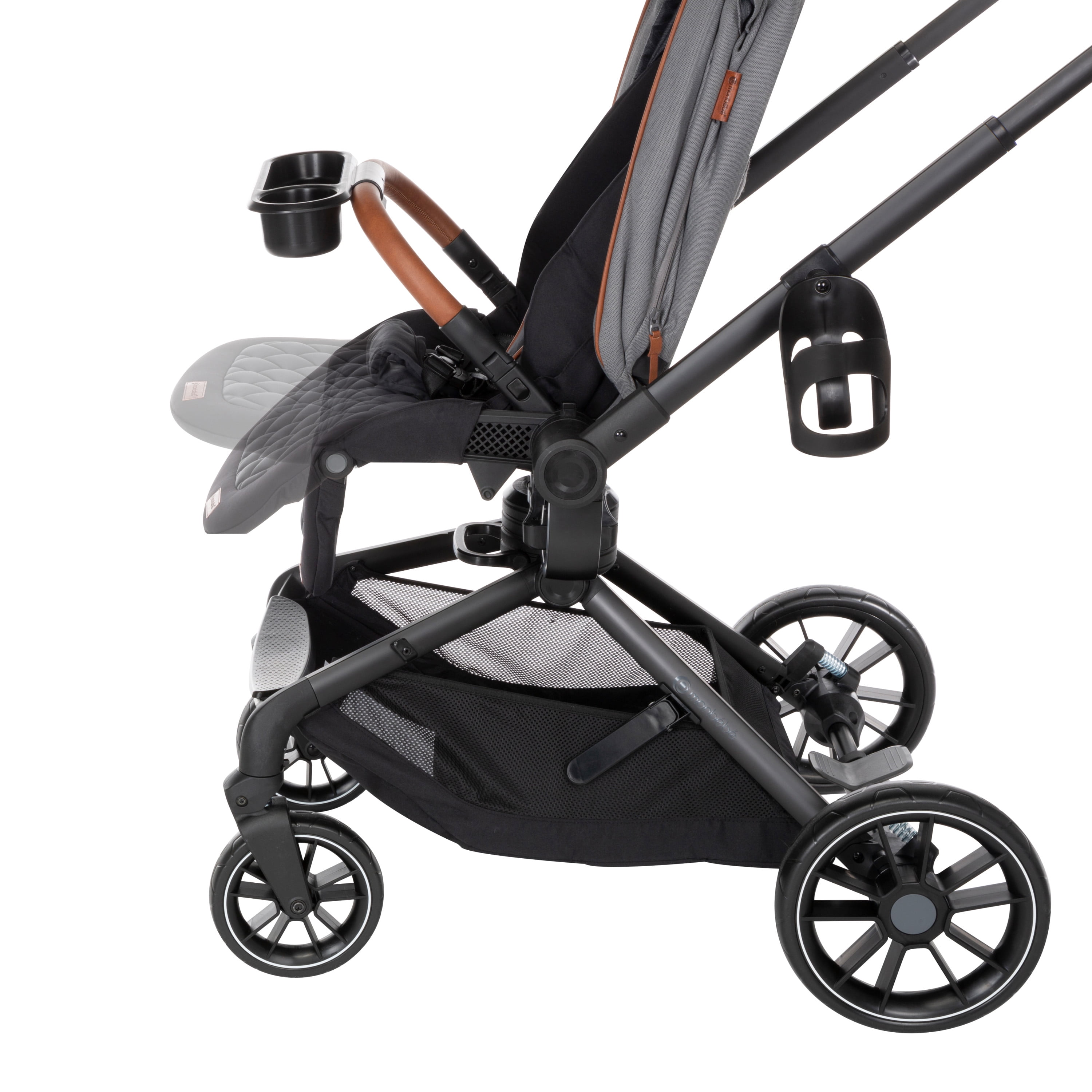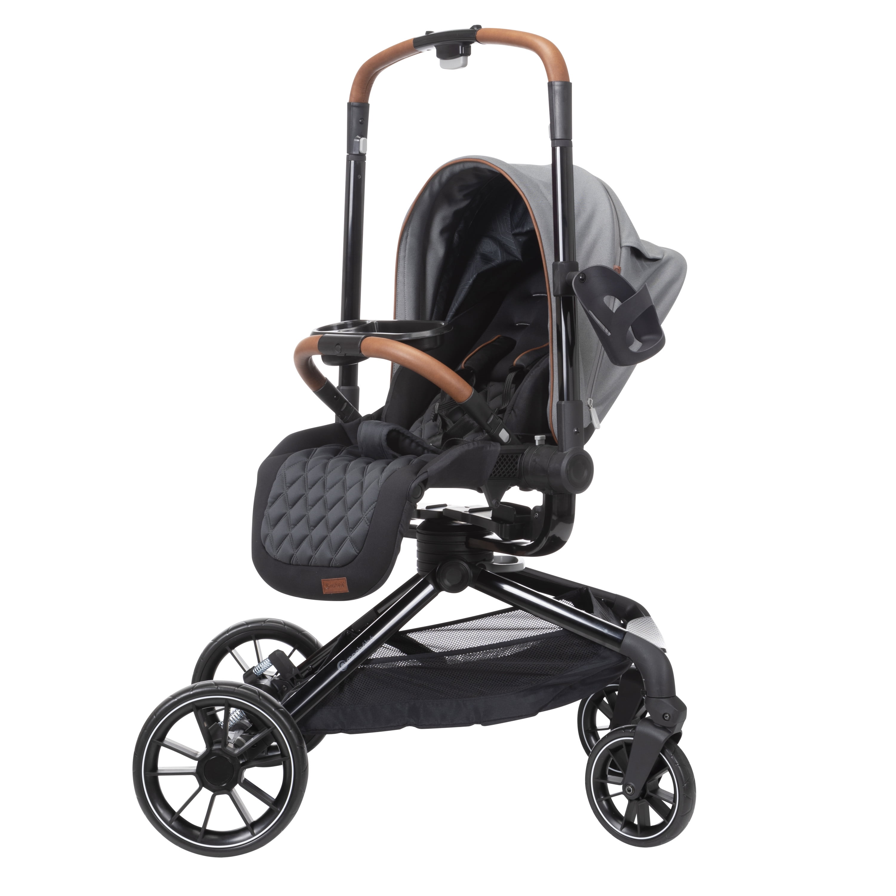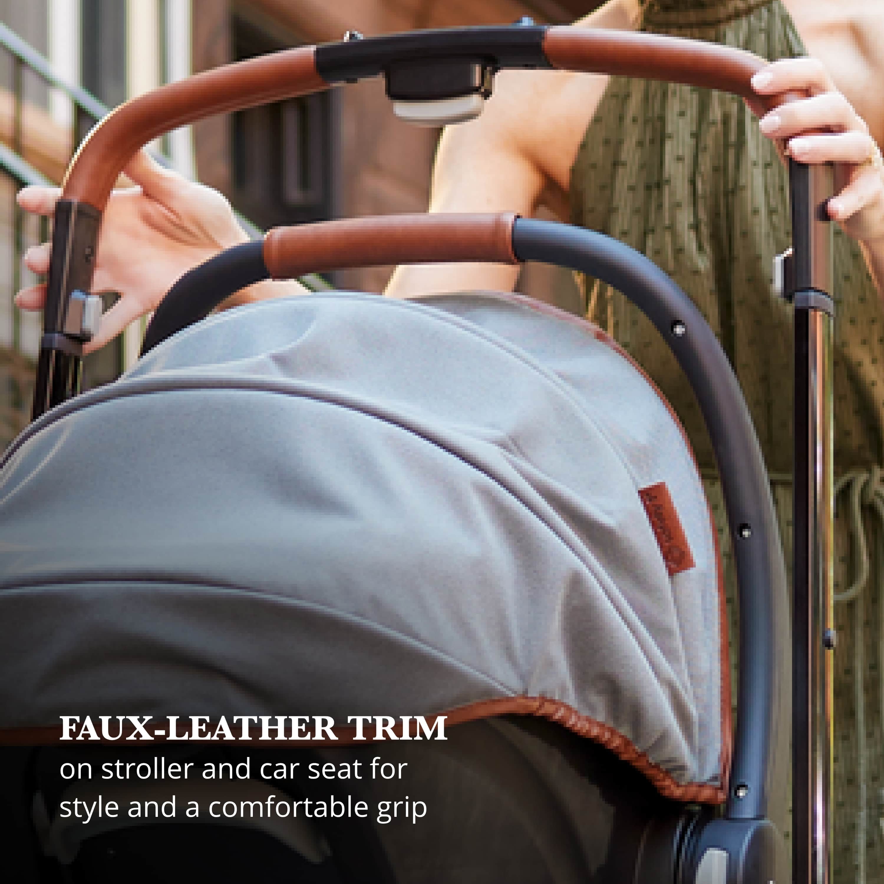 360° rotation lets you spin your little one in their stroller seat or infant seat gently and easily, changing their view in seconds Transition smoothly between 4 modes: parent-facing car seat caddy, world-facing car seat caddy, parent-facing stroller, and world-facing stroller Quilted, memory-foam stroller seat is ultra-comfy Large zipper-extend stroller canopy with an extended visor for UV sun protection and privacy, plus a peek-a-boo window Includes the Safety 1st onBoard FLX Infant Car Seat (fits babies from 4–30 lbs.) Car seat is lightweight and easy to carry at under 8 lbs. Large stroller storage basket with stretchy elastic for all your essentials Compact fold for easy stroller storage Convenient fold-away infant car seat adapters, so they’re always there when you need them Stroller has 3-position recline with an adjustable leg rest for comfort Height adjustable handlebar for a comfortable push Removable stroller swing-away bumper bar detaches from either side for easy in and out Parent cup holder that swivels to avoid tipping your drink when you move the handlebar to rotate your little one’s seat Cup holder accommodates up to a 20 oz. tumbler Flip-flop-friendly brake All-wheel suspension for a smooth ride over various terrains Stroller and car seat have a 5-point harness Faux-leather trim on stroller and car seat for style and a comfortable grip Side Impact Protection (SIP) in car seat Car seat has a memory-foam quilted pad for comfort Machine-washable car seat pad Stroller seat detaches easily to install the car seat Stroller accommodates children up to 50 lbs. Meets or exceeds all federal safety standards Stroller meets Disney Park standards
