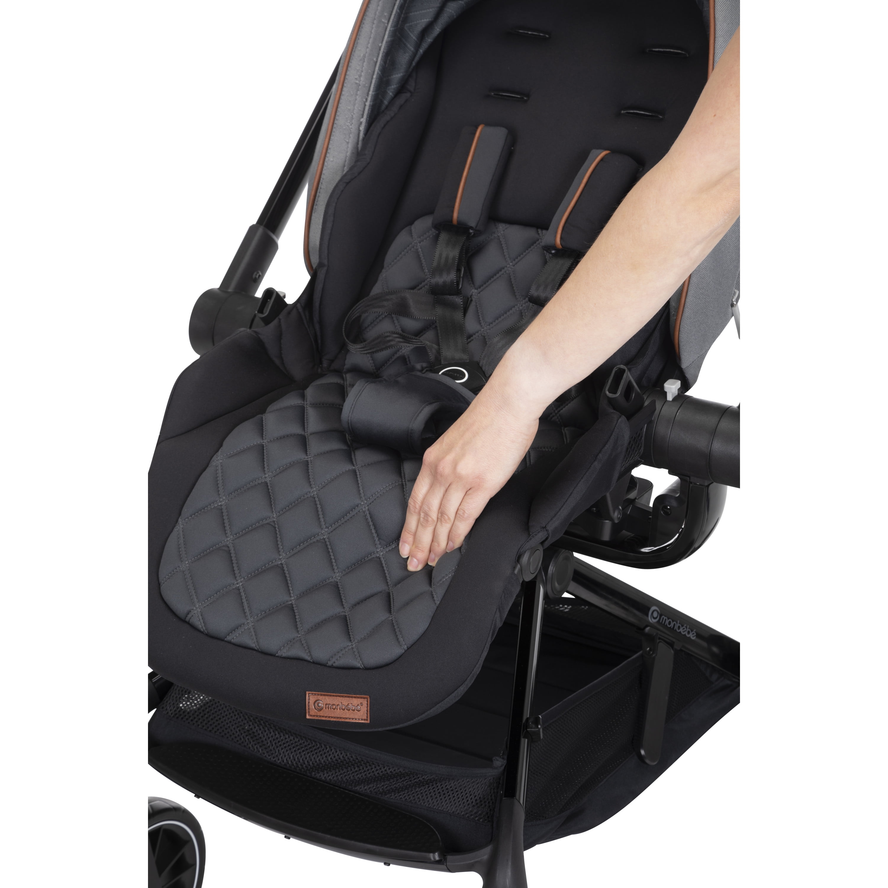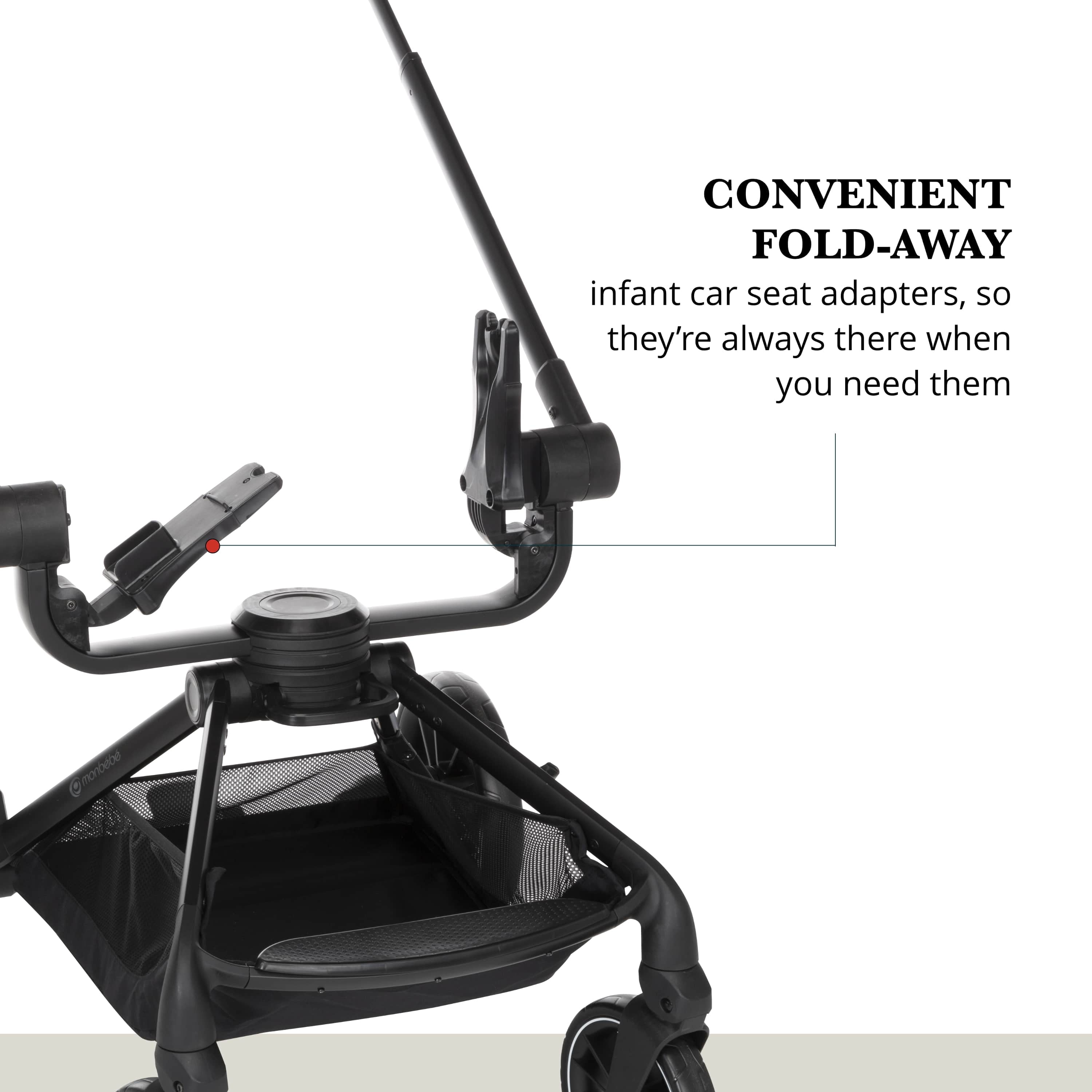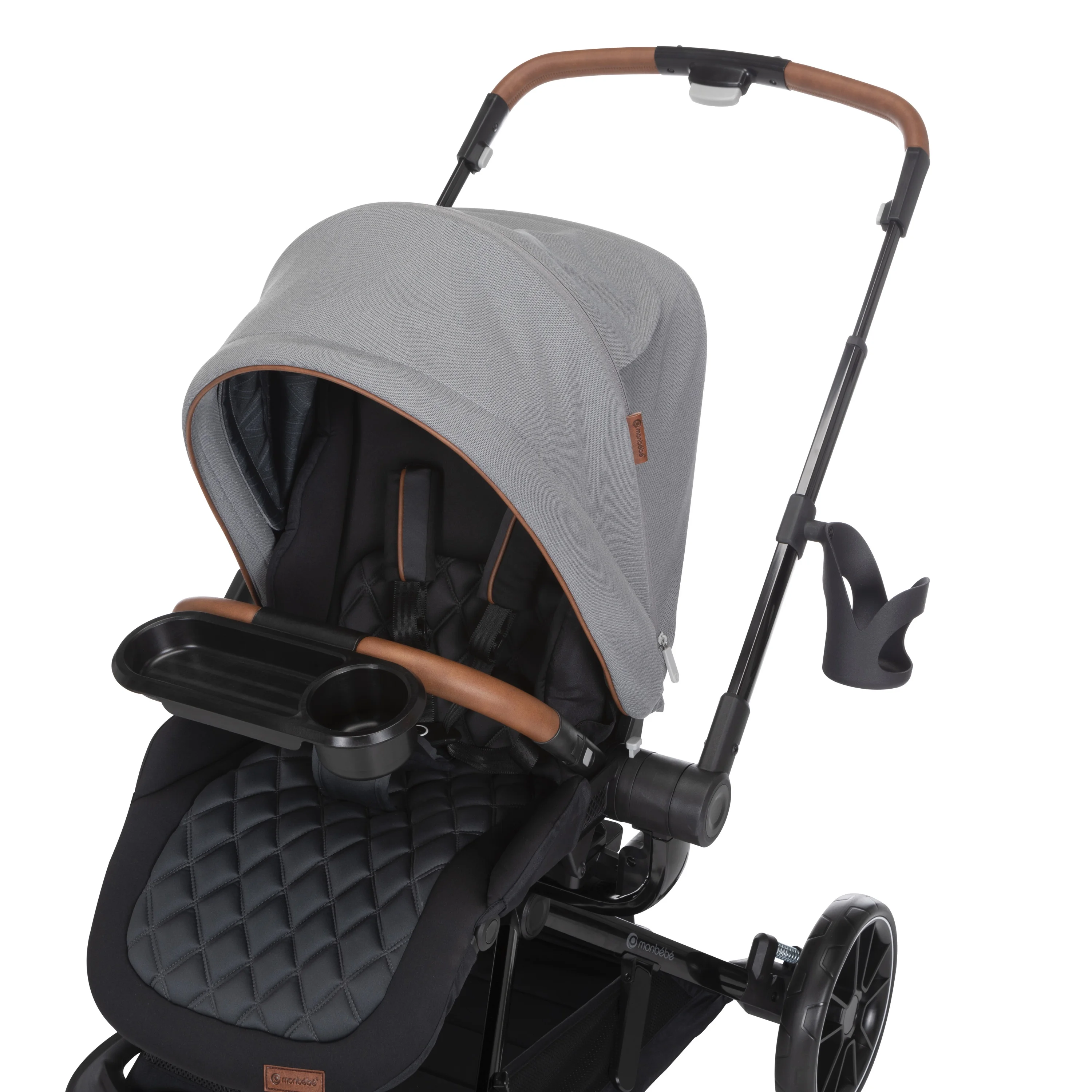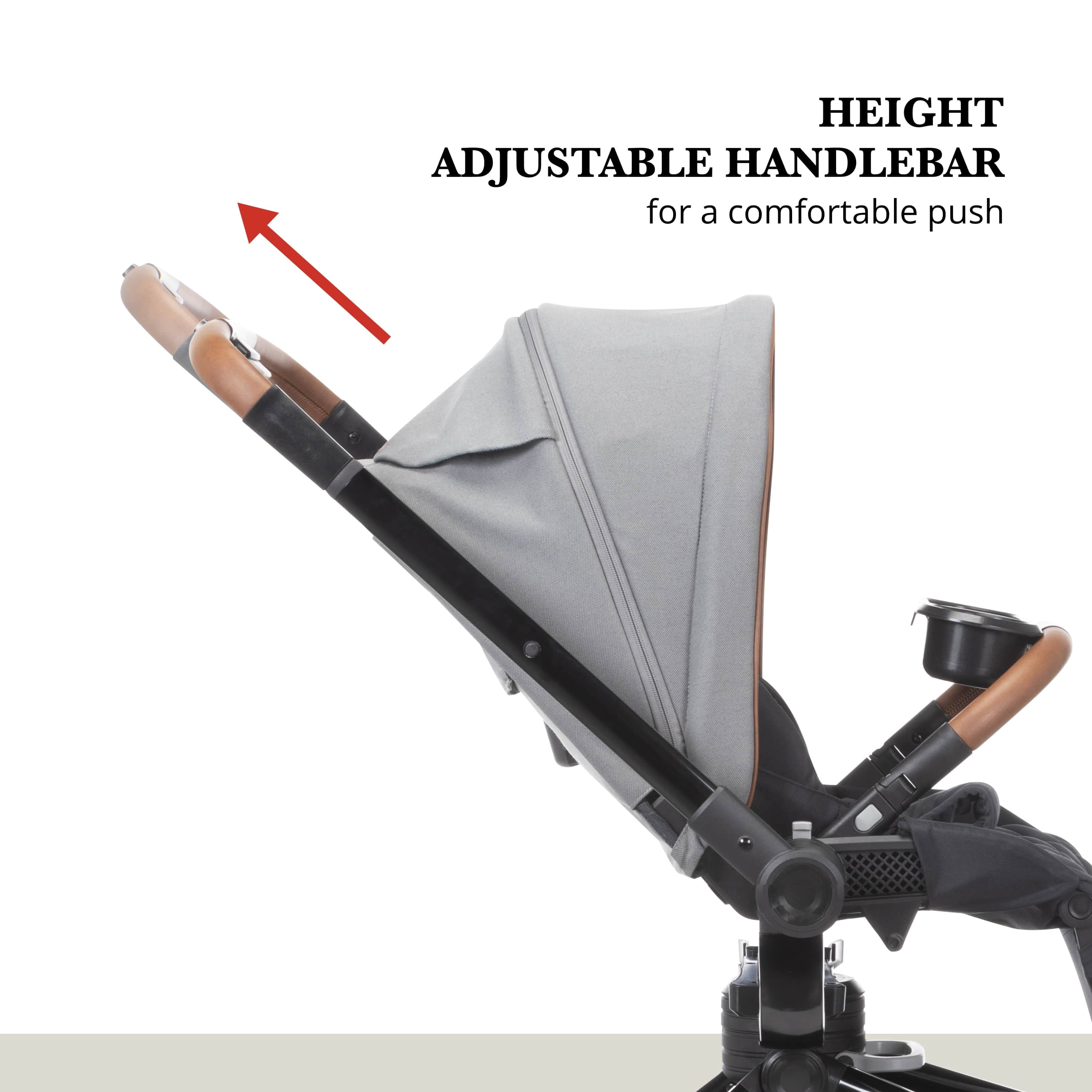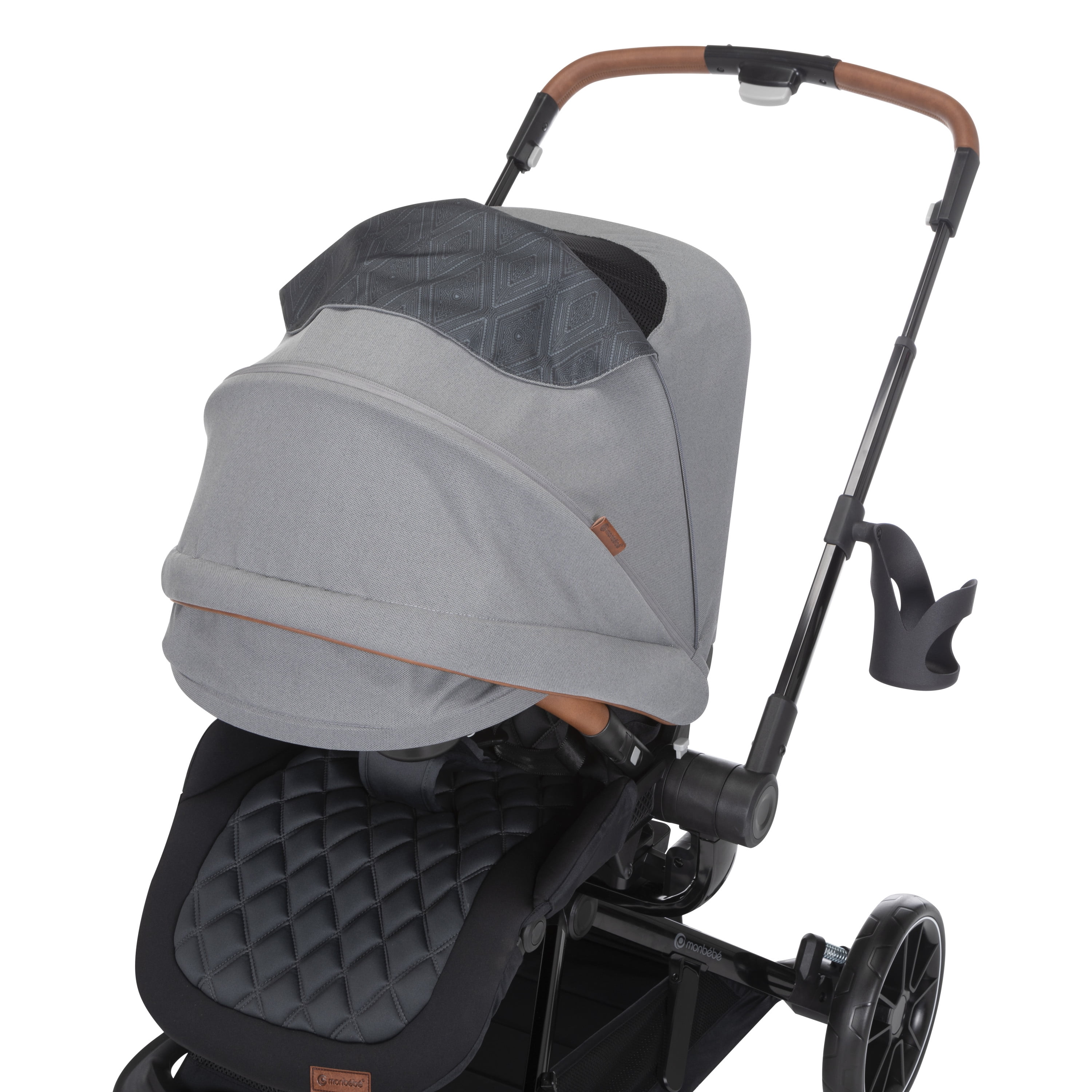 Take your little one for a spin with the Monbébé 360 Rotating Modular Travel System. Change their view (and yours) in seconds with the 360° rotating seat. With the push of a button, effortlessly raise the handlebar to turn the seat. Now, your tiny traveler is facing the other direction, so you can keep an eye on each other or let them see the road ahead. This versatile stroller is paired with the Safety 1st onBoard FLX Infant Car Seat and makes going from car to stroller (and back again) quick and easy. The infant car seat can also rotate 360° when attached to the stroller. Whether you’re headed to the park or out to run errands, you’ll have plenty of room to stow snacks and essentials in the roomy storage basket. Other features to love include a large canopy for sun protection and privacy, quilted memory-foam padded stroller and car seats, 3-position recline, and an adjustable leg rest for comfort. Attaching the Safety 1st onBoard FLX Infant Car Seat is easy with the fold-away car seat adapters––because they’re integrated, you’ll never have to worry about losing them. This travel system is made with parents’ comfort in mind as well, featuring adjustable telescoping handlebar, flip-flop-friendly brake, and a compact fold. With all its comfort and conveniences, you and your little explorer will enjoy 360° of fun and adventure from your very first stroll.