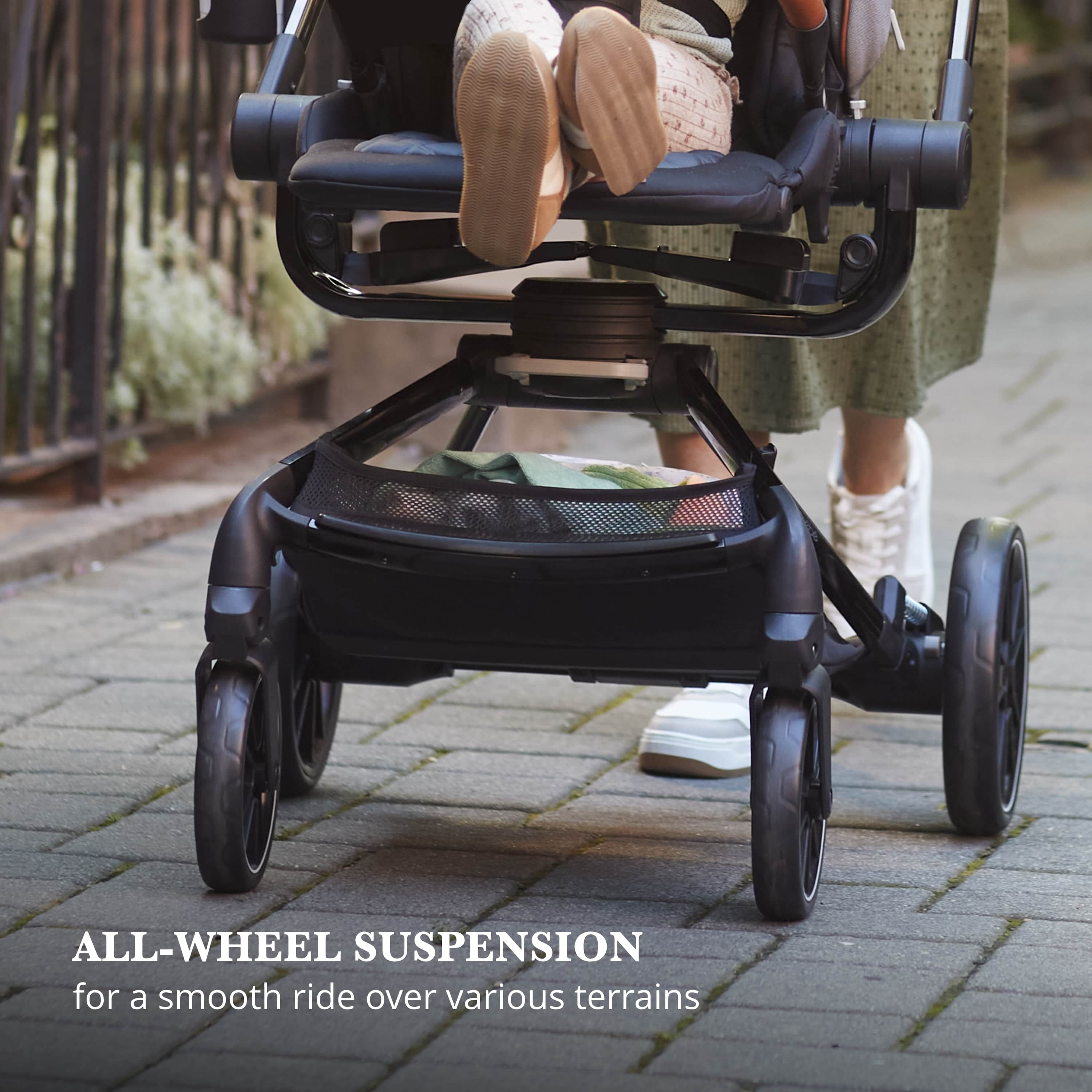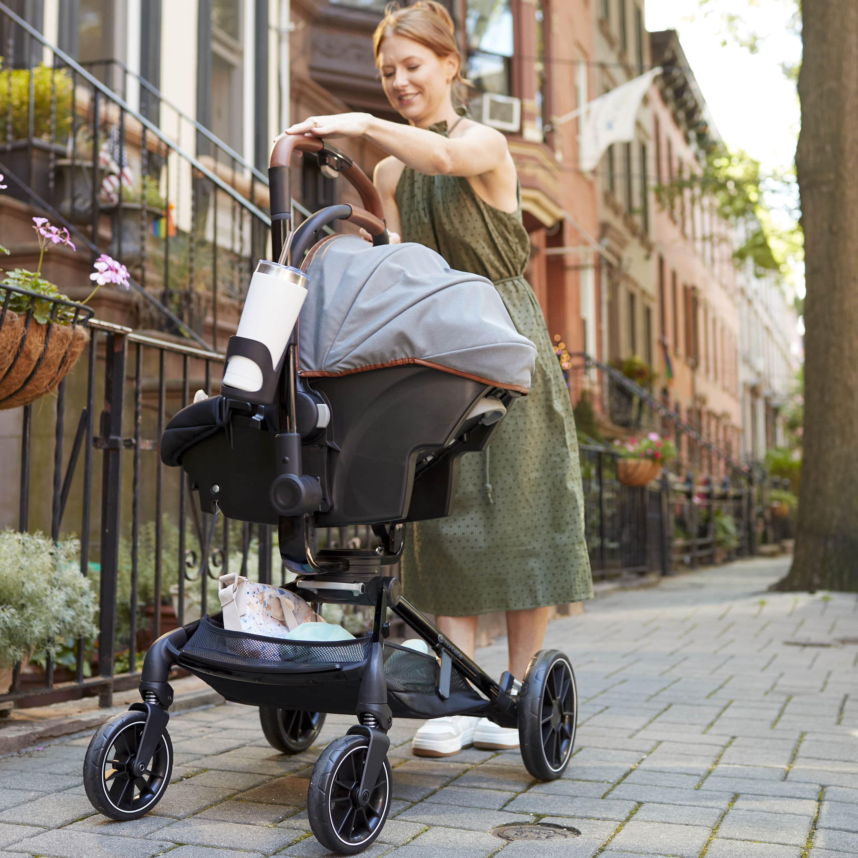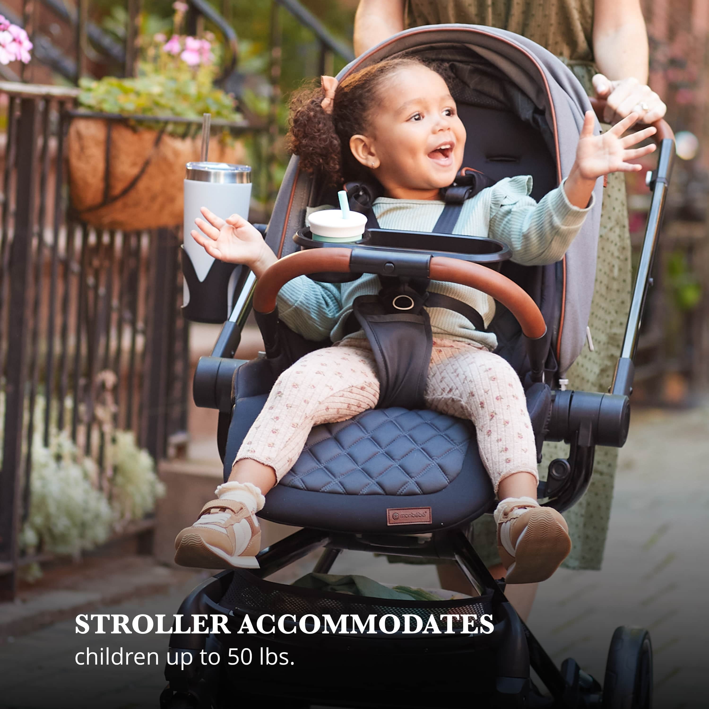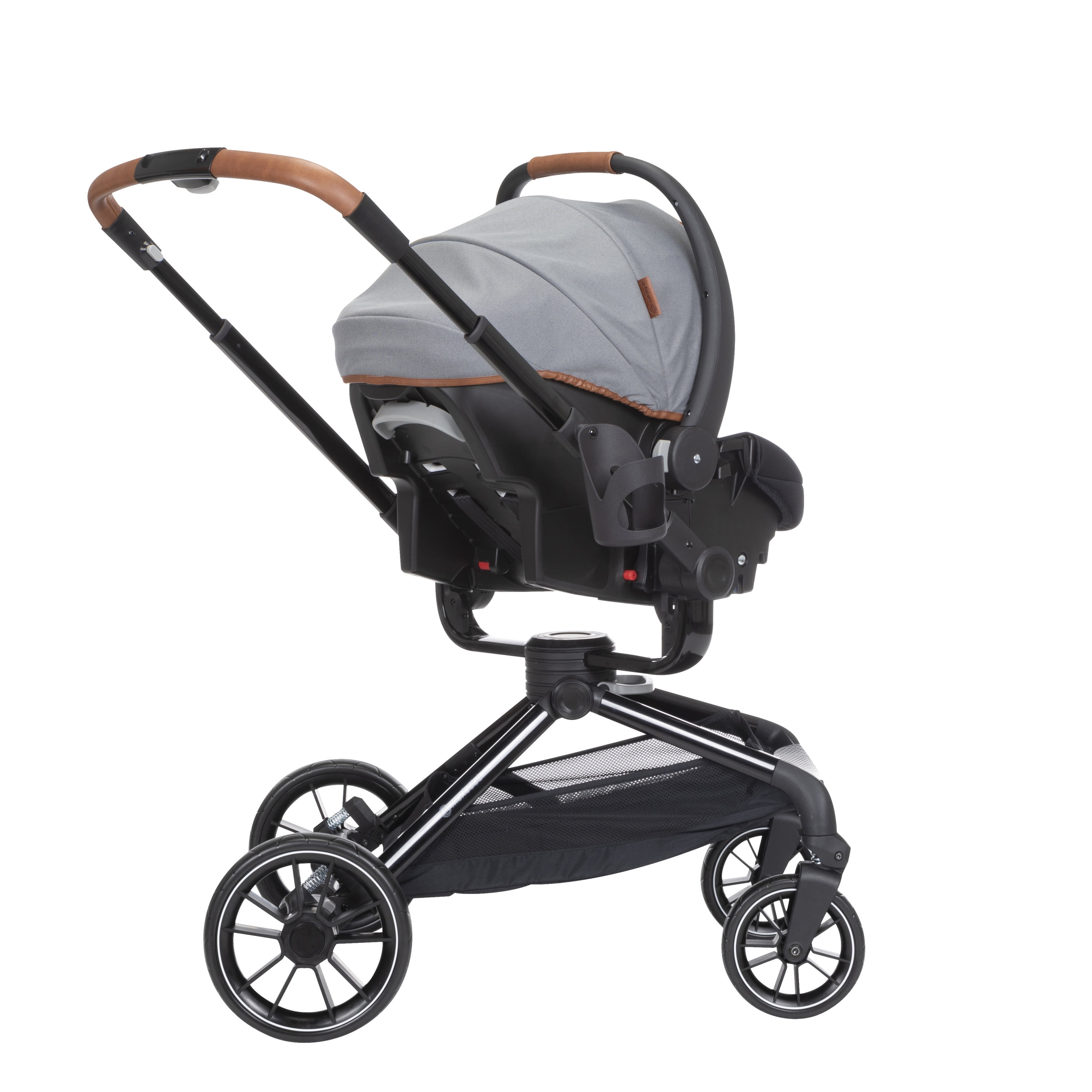 Take your little one for a spin with the Monbébé 360 Rotating Modular Travel System. Change their view (and yours) in seconds with the 360° rotating seat. With the push of a button, effortlessly raise the handlebar to turn the seat. Now, your tiny traveler is facing the other direction, so you can keep an eye on each other or let them see the road ahead. This versatile stroller is paired with the Safety 1st onBoard FLX Infant Car Seat and makes going from car to stroller (and back again) quick and easy. The infant car seat can also rotate 360° when attached to the stroller. Whether you’re headed to the park or out to run errands, you’ll have plenty of room to stow snacks and essentials in the roomy storage basket. Other features to love include a large canopy for sun protection and privacy, quilted memory-foam padded stroller and car seats, 3-position recline, and an adjustable leg rest for comfort. Attaching the Safety 1st onBoard FLX Infant Car Seat is easy with the fold-away car seat adapters––because they’re integrated, you’ll never have to worry about losing them. This travel system is made with parents’ comfort in mind as well, featuring adjustable telescoping handlebar, flip-flop-friendly brake, and a compact fold. With all its comfort and conveniences, you and your little explorer will enjoy 360° of fun and adventure from your very first stroll.