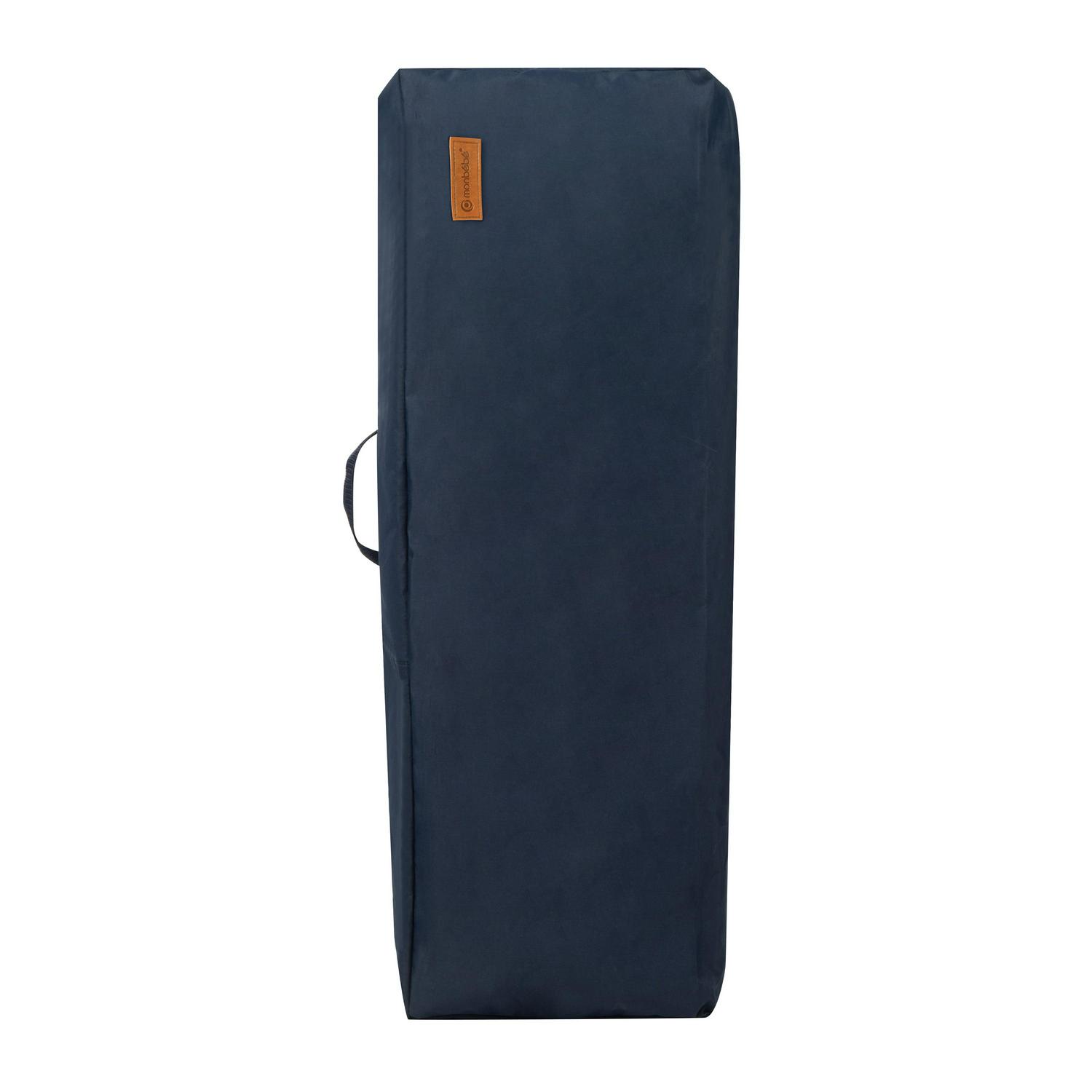 The Monbebe Flex Deluxe Baby Play Yard with Bassinet also includes sleek and stylish details such as faux leather on the play yard’s legs with handsome stitching and two adorable soft toys for baby on the baby bassinet’s detachable canopy.