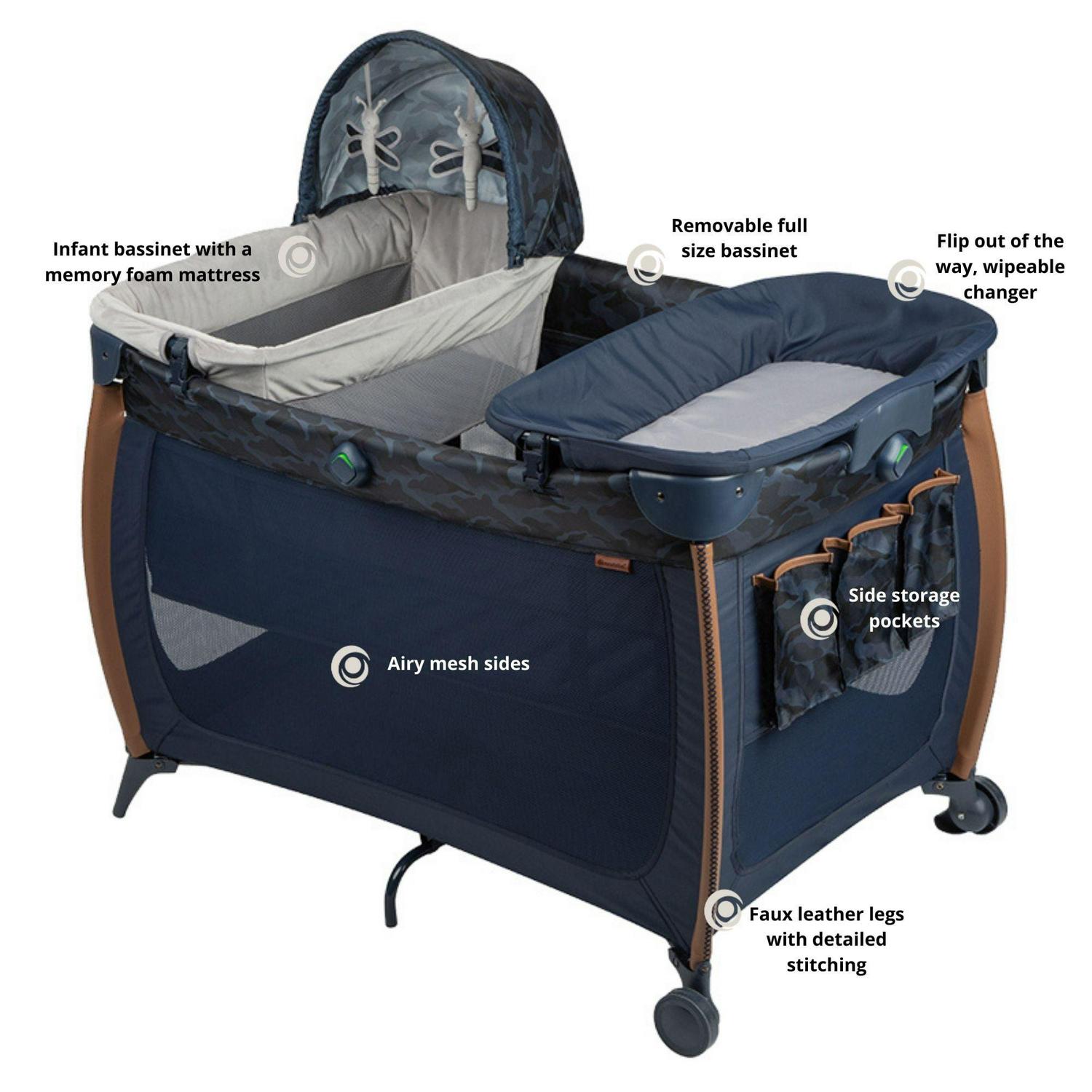 Monbebe Flex Deluxe Baby Play Yard with Bassinet and Changer, Camo