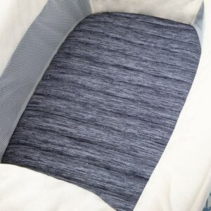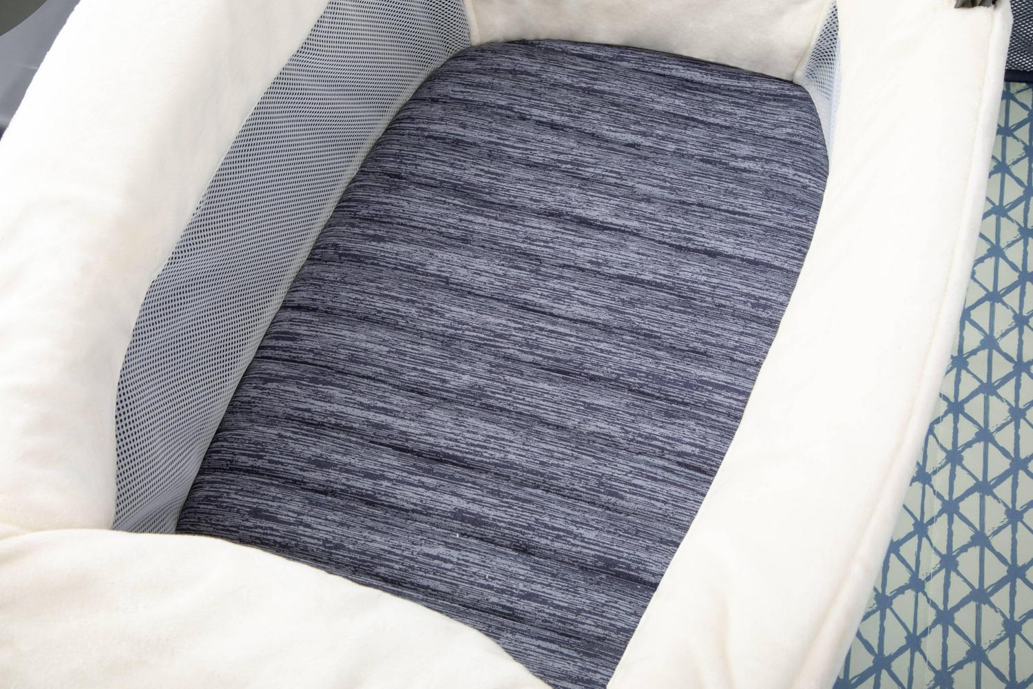 Much like the bassinet, the baby changing station on the play yard’s opposite side can be flipped up when it’s time for a diaper change, and the side storage pockets are perfect for storing diapering essentials.