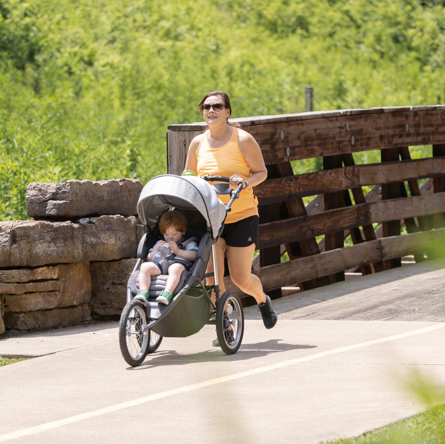 You re ready to welcome your little one into your family s active outdoor lifestyle, but what is the best jogging stroller on the market that not only meets your baby s needs for comfort and safety, but also makes it easier for you to run, walk, hike, or simply do errands with your little sprout in tow Comfy Memory Foam and a Smooth Ride With its memory foam seat, performance shocks, stationary front wheel, and polished wheel ball bearings to reduce rolling resistance, the Monbebe Rebel Jogging Stroller is the best solution for keeping your baby comfortable while you hit your favorite nature trails. A Jogging Stroller for Parental Peace of Mind This brilliant jogging stroller features an anti-bacterial treatment on its chic, faux leather handle for your peace of mind while out and about, as well as a parent wrist safety strap and hand lever bike brake so the jogging stroller has no chance of accidentally getting away from you. We ve also added reflective binding on the storage basket for added safety on evening excursions. Comfort and Convenience The Monbebe Rebel Jogging Stroller is JPMA certified and has an adjustable handle that is 2 inches taller than most traditional strollers in addition to parent cup holders and a storage compartment for your small travel essentials. Our Commitment to Children Worldwide Monbebe has partnered with Watsi to help support life changing surgeries for children around the world. Learn more by visiting www.watsi.org/company/dorel.