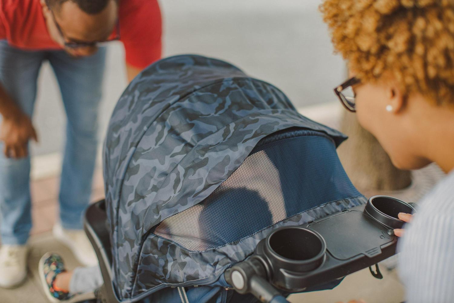 – Plenty of stroller storage with covered handlebar compartment and oversized basket