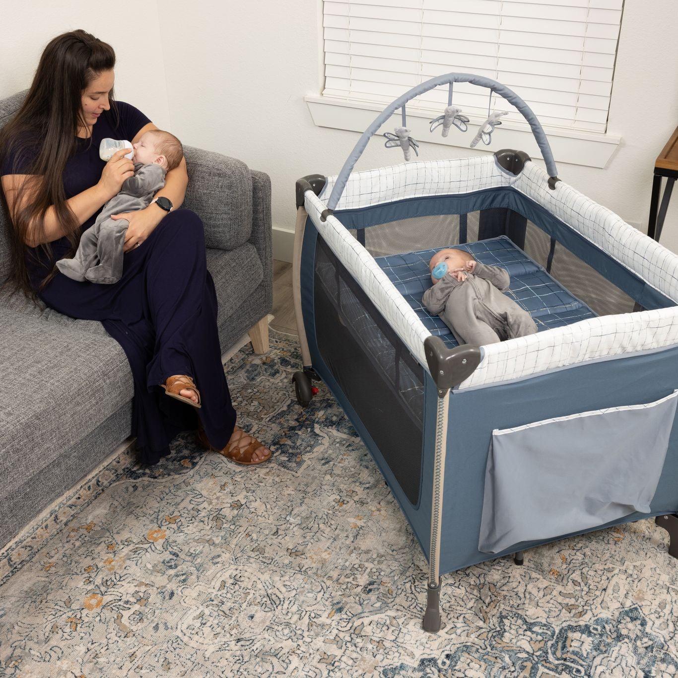 - Monbebe Willow Rocking Play Yard with Full Size Bassinet, Plaid
