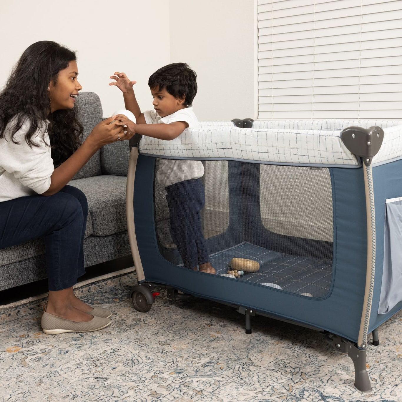 – Monbebe Willow Rocking Play Yard with Full Size Bassinet, Plaid