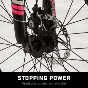 - Front disc brake and rear V-brake deliver crisp, controlled stops