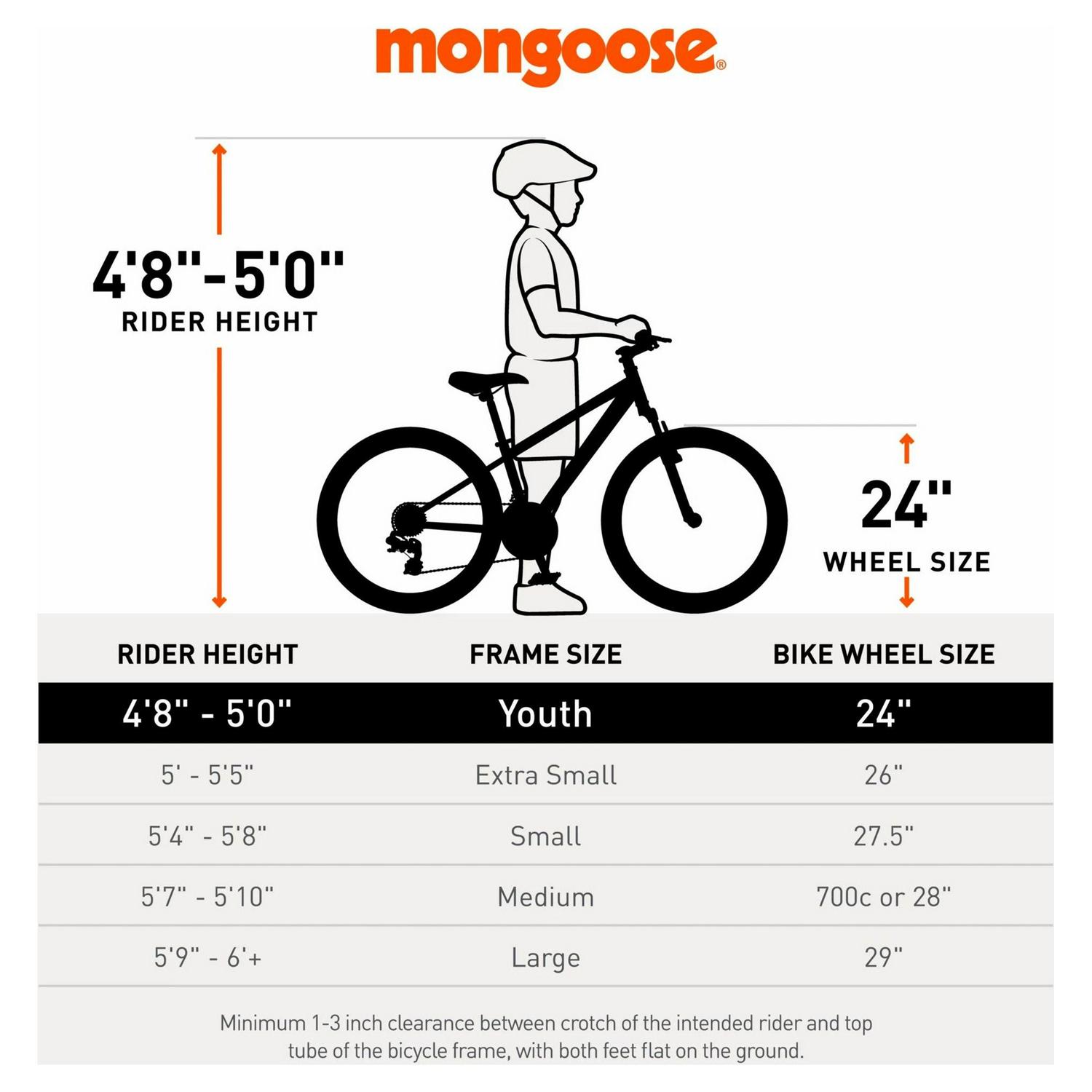 – 24-inch wheels fits riders 56 to 66 inches tall.