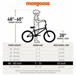 – Designed to take on the bike park or neighborhood rides. 20-inch wheels fit riders ages 6 and up, or 4 to 5 feet tall.