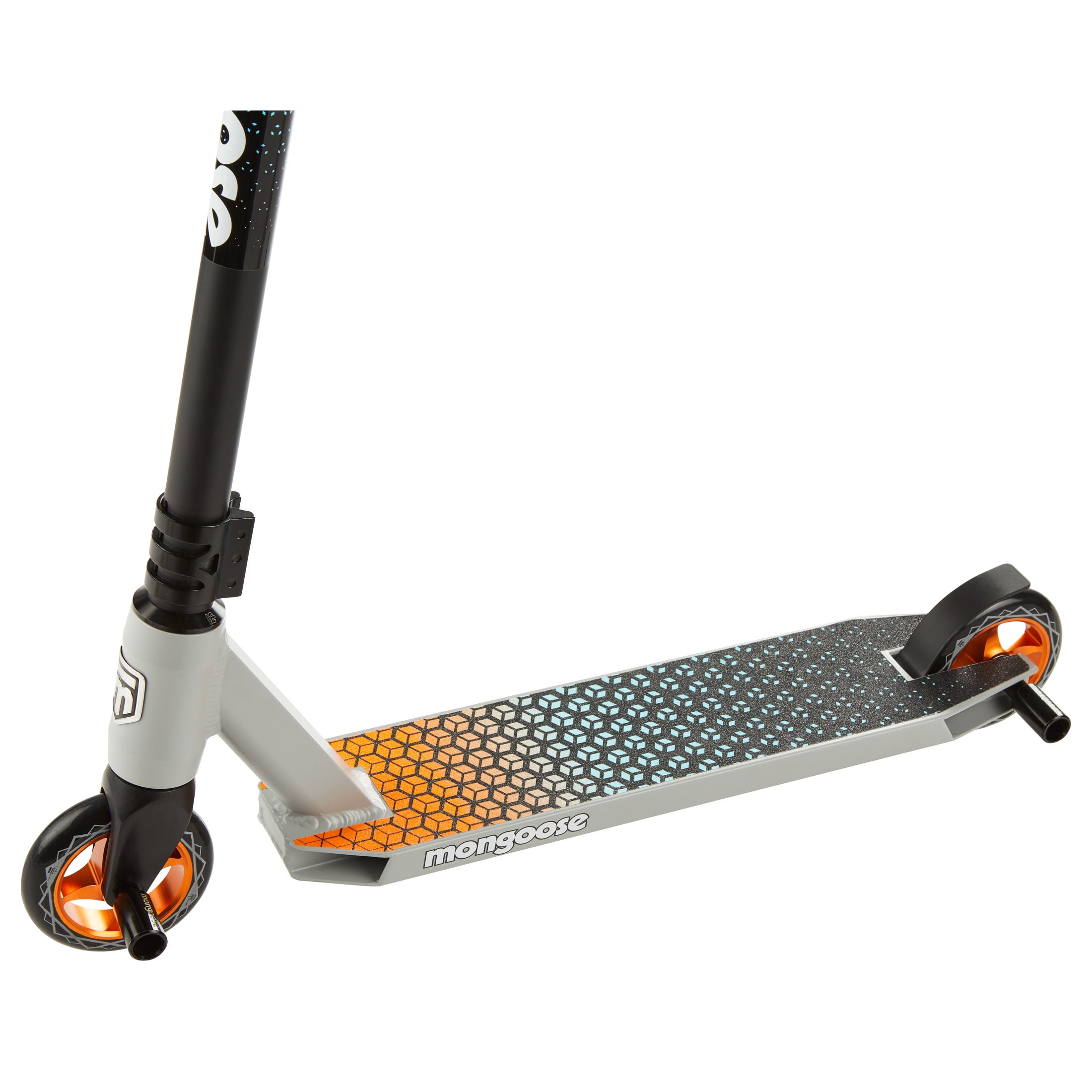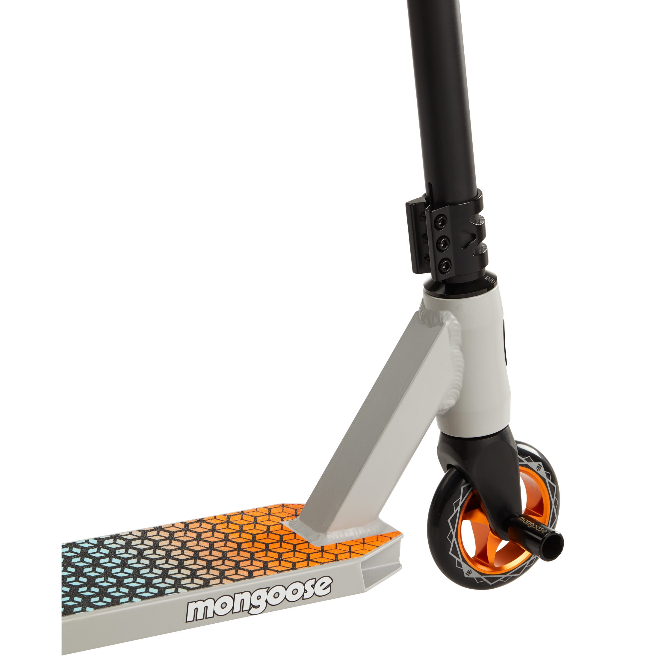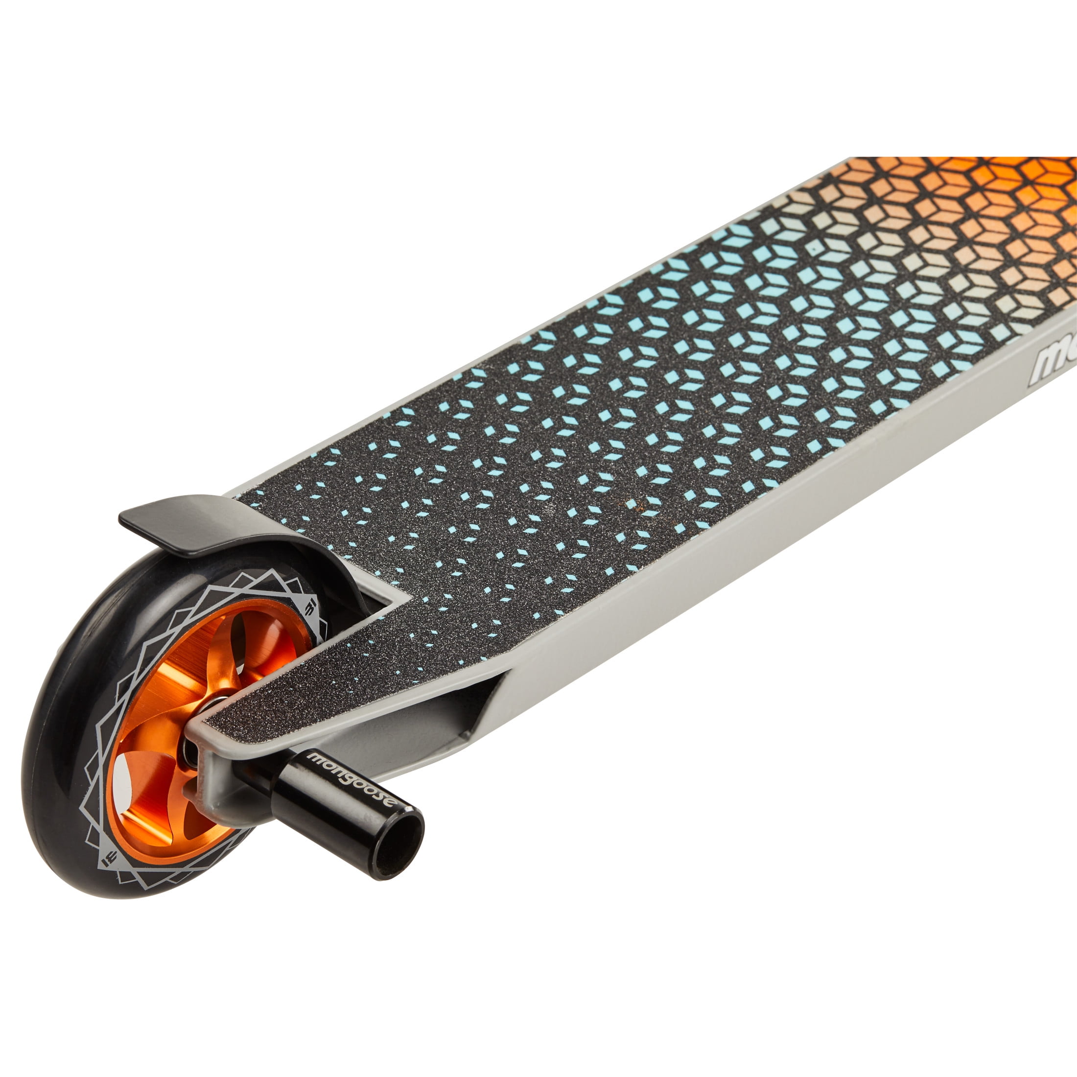 Mongoose Rise 110 Elite Freestyle Scooter, for ages 8 and up, Grey orange