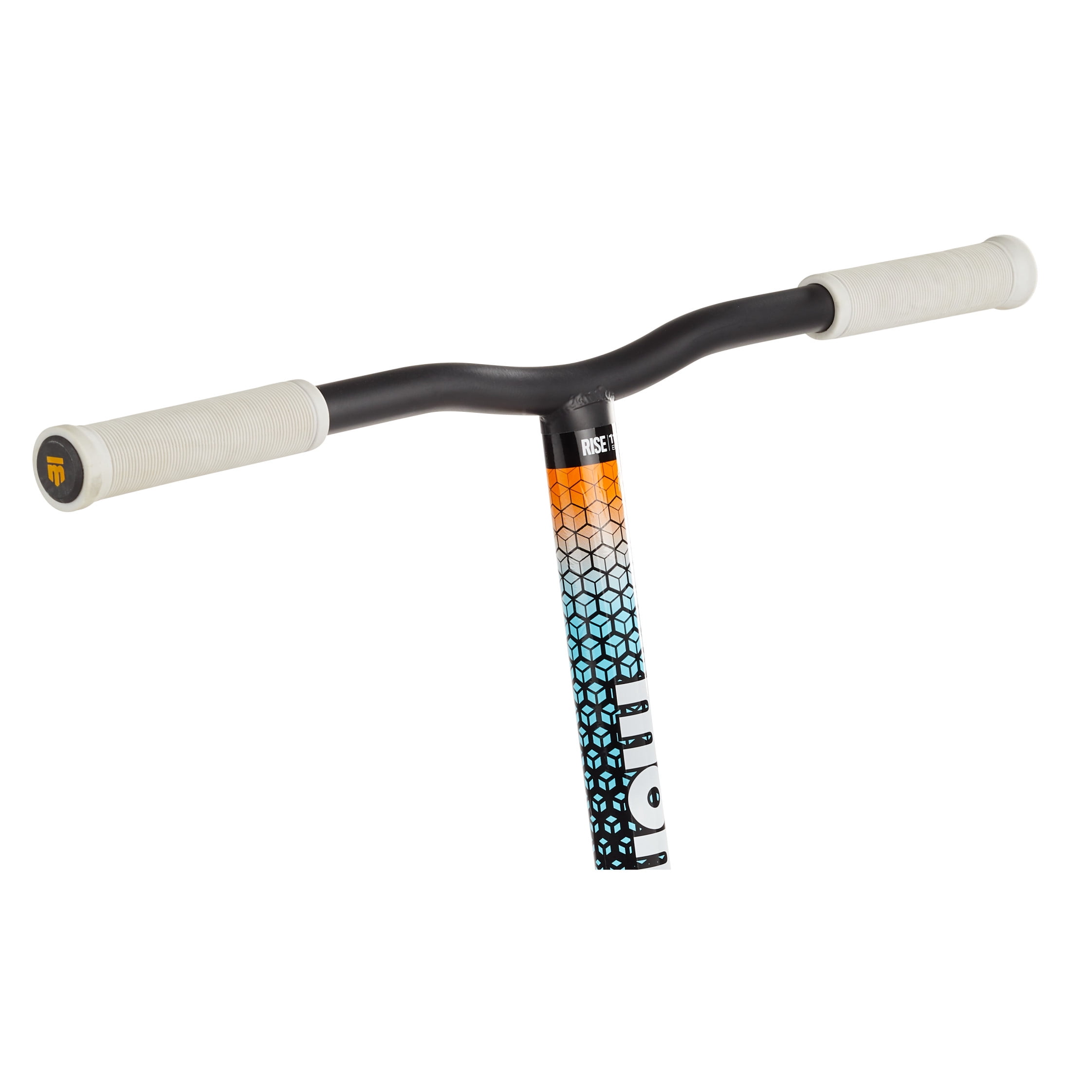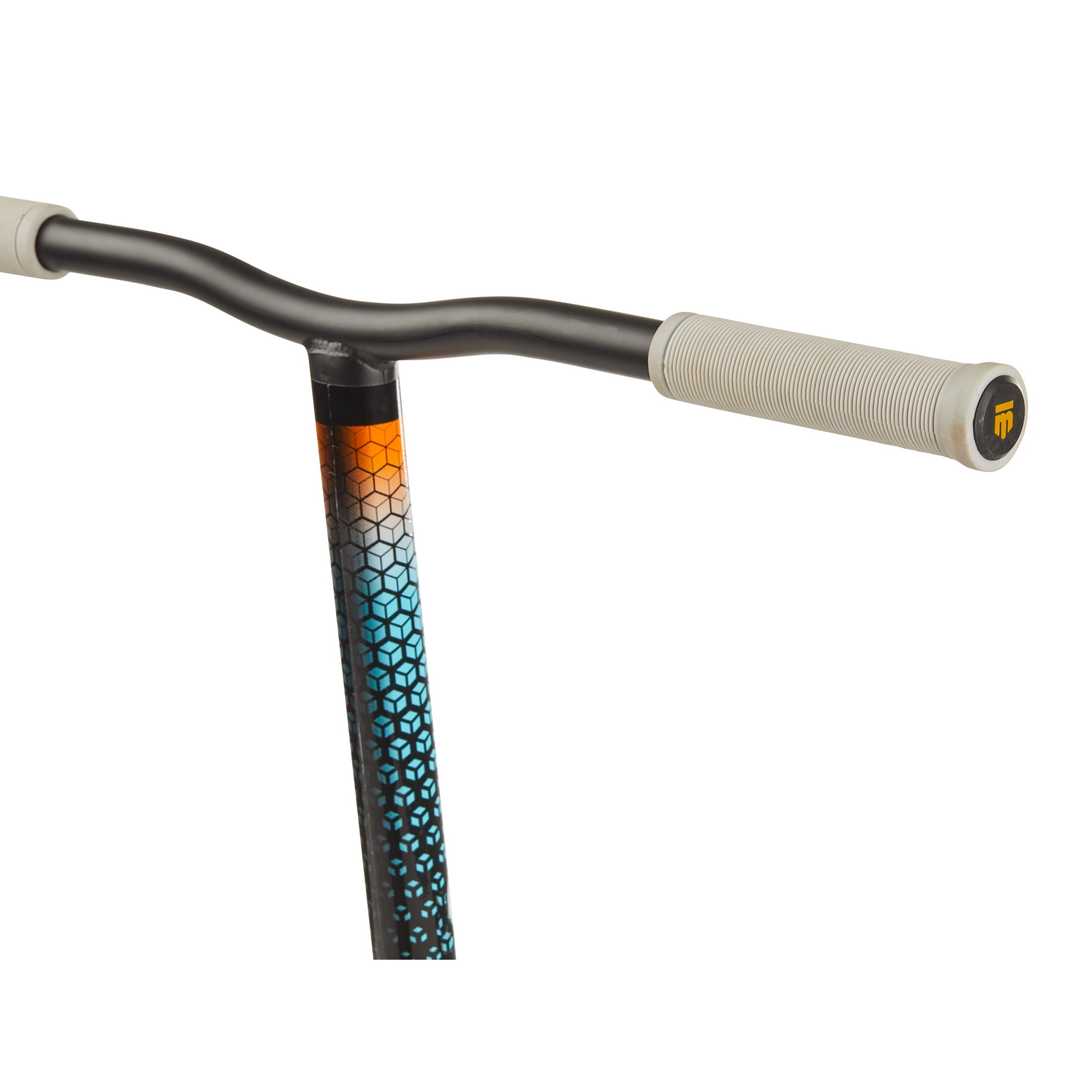 Lightweight alloy deck with extended standing area and front and rear alloy pegs for pro-style park performance. Full-coverage MaxGrip™ on the alloy deck and steel brake combine with 110 mm high impact alloy wheels and durable ABEC-7 bearings to provide smooth non-slip riding. One-piece welded steel T-bar handlebar with bike-style grips provide the perfect combination of durability and comfort. Triple anodized CNC clamp collar, internal sealed threadless headset, and alloy fork for precise, crisp steering wherever you go. Heavy-duty frame supports riders ages 8+, up to 220 lbs.