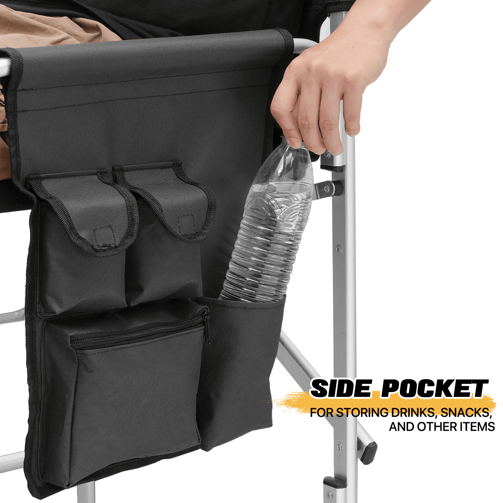 MoNiBloom Folding Camping Director Chair with Side Table & Storage Pocket, for Adult Beach, Fishing Trip Picnic Lawn Concert Outdoor, Black