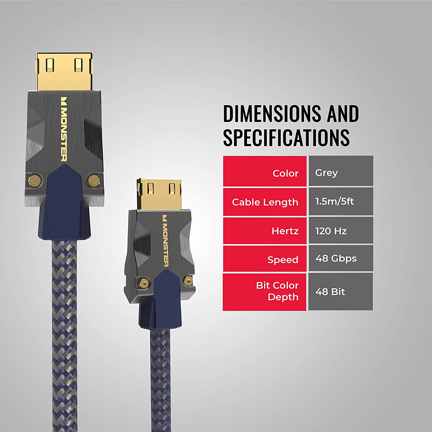 Monster Cable M3000 HDMI 2.1 Cable 1.5m for 4K & 8K Resolution – High-Speed