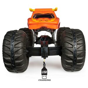 Overcome any obstacle with the biggest El Toro Loco remote control truck ever! This powerful all-terrain remote control vehicle measures over 2 feet long and puts you in control of epic Monster Jam action! The MEGA El Toro Loco s oversized tires help you roll over anything and keep on going! Featuring a custom rubber tread for superior traction control and mega-sized shocks and suspension, this 1:6 scale USB-rechargeable RC monster truck offers insane performance on and off the road. The lightweight construction makes it easy to pick up and turn your world into a Monster Jam arena! Using the dual joystick controller with 2.4GHz frequency, control the Mega El Toro Loco RC from up to 150 feet away. Show off your epic moves with a fully functional remote controller: drive in forward or reverse, and steer left or right! With a detailed body, authentic BKT Tires, and look-alike chassis, driving this replica El Toro Loco is just like driving the real life truck. For even more epic Monster Jam action, look for the MEGA Grave Digger (sold separately). Tackle any obstacle and experience ultimate performance with the Monster Jam El Toro Loco RC!