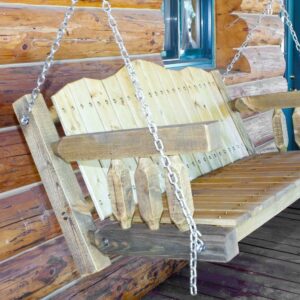 From Montana Woodworks, the largest manufacturer of handcrafted, heirloom quality rustic furnishings in America comes the Homestead Collection line of furniture products. Handcrafted in the mountains of Montana using solid, American grown wood, the artisans rough saw all the timbers and accessory trim pieces for a look uniquely reminiscent of the timber-framed homes once found on the American frontier. The same swing/bench as the Montana Woodworks lawn swing with “A” frame but requires mounting to a sturdy overhead location for use. Also known as a porch swing, this item is designed and constructed for years of trouble free use and enjoyment. High quality chains and hardware included. Some assembly required. Seat height is user adjustable. Seat depth 20″. Seat width 48″. Capacity 500 pounds when properly secured to weight bearing header. This item comes professionally finished with a premium grade exterior finish. 20-year limited warranty included at no additional charge.