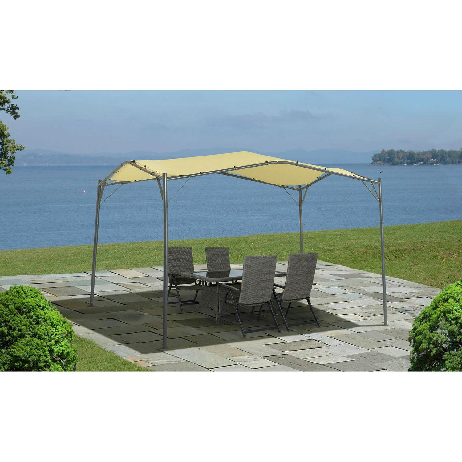 Stylish, Practical Backyard Shade – A high quality, seasonal shade alternative to the standard gazebo. Its unique shape offers an attractive aesthetic that’s functional: stay dry in light rain and protected from the summer sun. A portable gazebo you can place and move anywhere in your backyardLess Hardware, Faster Assembly – Small-screw ‘Y’ braces at each leg use threaded inserts to make assembly faster. Easy screw-in leg and cross-beams. Push pin leg to frame and roof to frame connectors.Easy Cover Attachment – Cover attaches easily with bungees on all 4 sides of the unit. Turnbuckles create an adjustable, tensioned cover for quality shade that looks great.Strong Steel Frame – Powder coated to prevent corrosion and rust, so you can enjoy season after season. The 2.2″ diameter corner posts and ‘Y’ braces reinforce strength and stability of the unit.UV Protection, Comfortable Shade – Our cover is made from a durable 250 gsm CPAI-84 Sec.6 firerated polyester cover that offers inherent UVA and UVB protection.Backyards, decks, patios, pool area, special events, seasonal shade and protection.